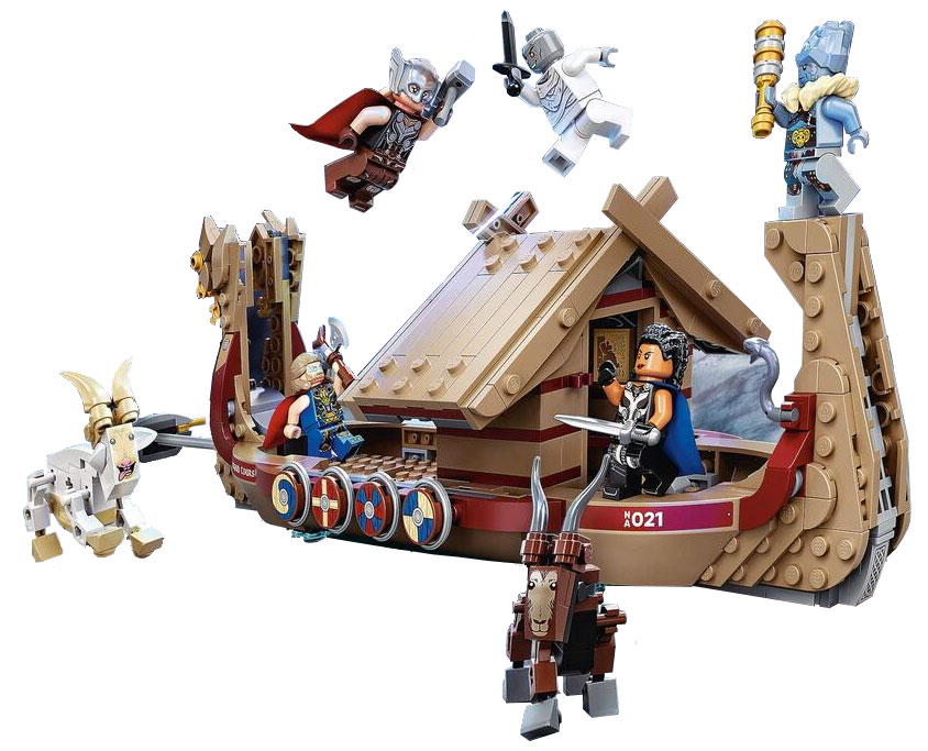 We caught a glimpse of the vessel on a leaked promotional poster a few months back, and now The LEGO has officially unveiled The Goat Boat set from the upcoming Marvel Studios sequel Thor: Love and Thunder which includes minifigures for Thor, Mighty Thor, Valkyrie, Korg and the movie’s villain Gorr the God Butcher., as well as brick built versions of the legendary goats Toothgnasher and Toothgrinder. The set goes on sale on April 26th, priced at £44.99/$49.99; check it out here…
