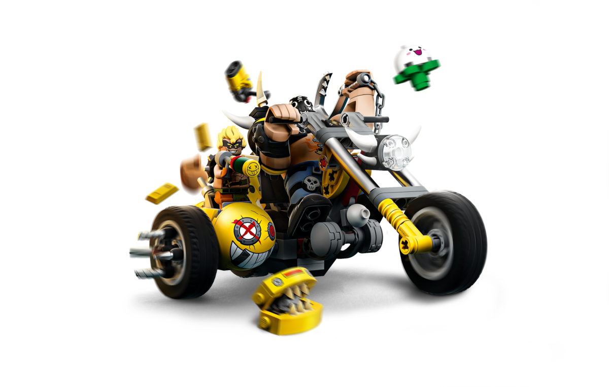 • This LEGO® brick-built model comes with two highly popular Overwatch® figures: BigFig Roadhog with his Chain Hook and minifigure Junkrat with his Frag Launcher and iconic peg leg.