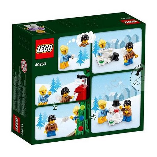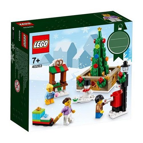 Enjoy a perfect Christmas Eve at the LEGO® Christmas Town Square, with a colorful holiday tree, shop stall, sleigh, lamppost, mailbox, 3 minifigures and a buildable snowman figure.