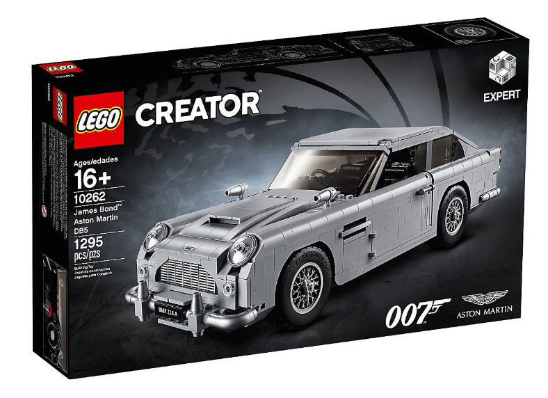Get a license to build with the awesome LEGO® Creator Expert 10262 James Bond™ Aston Martin DB5. This impressive replica model captures the elegance and timeless sophistication of Agent 007’s iconic 1964 sports car, and comes with a wealth of authentic details and functioning gadgetry. Open the doors and you’ll discover a detailed interior with a concealable radar tracker and a door compartment containing a telephone. And when it’s time for action, activate the passenger ejector seat, turn the revolving number plates, raise the rear-window bulletproof screen, deploy the wheel-mounted tyre scythes and pull back the gearstick to reveal the front wing machine guns. This collectible model car also features a detailed straight-6 engine, drum-lacquered silver front and rear bumpers, moulded silver-coloured wire wheel rim inserts and front and rear Aston Martin logos. The model has been designed to provide a challenging and rewarding building experience full of nostalgia—a must-have for fans of the Aston Martin DB5, James Bond movies and LEGO building sets.