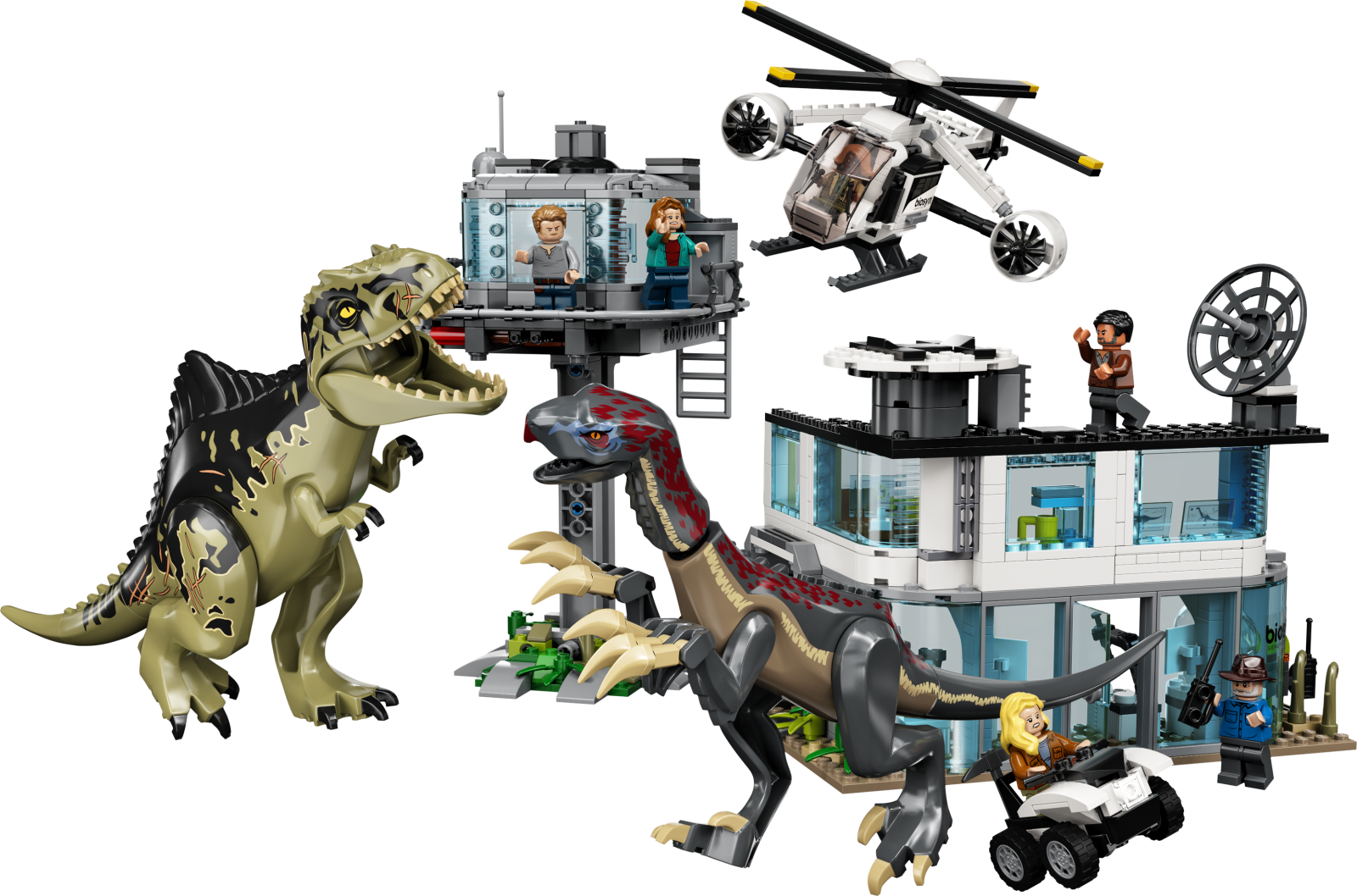 Create your own dinosaur adventures with this cool building set inspired the Jurassic World Dominion movie. It features an HQ with a lab, an all-terrain buggy, garage, observation tower and a helicopter. Bring your stories to life with 6 minifigures – Owen Grady, Claire Dearing, Dr. Alan Grant, Dr. Ellie Sattler, Kayla Watts and Dr. Henry Wu – plus Giganotosaurus and Therizinosaurus figures.