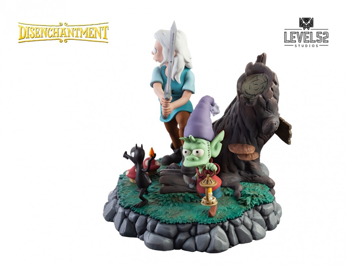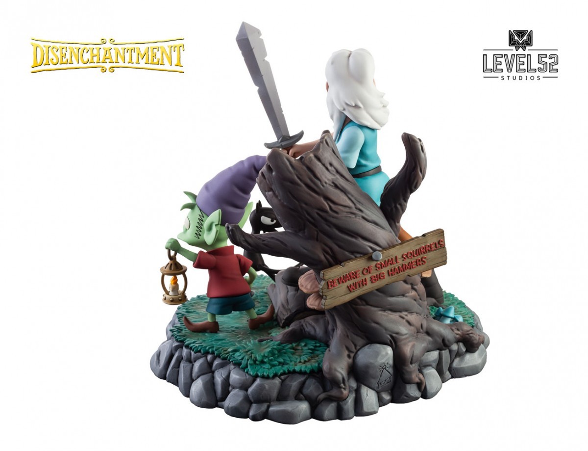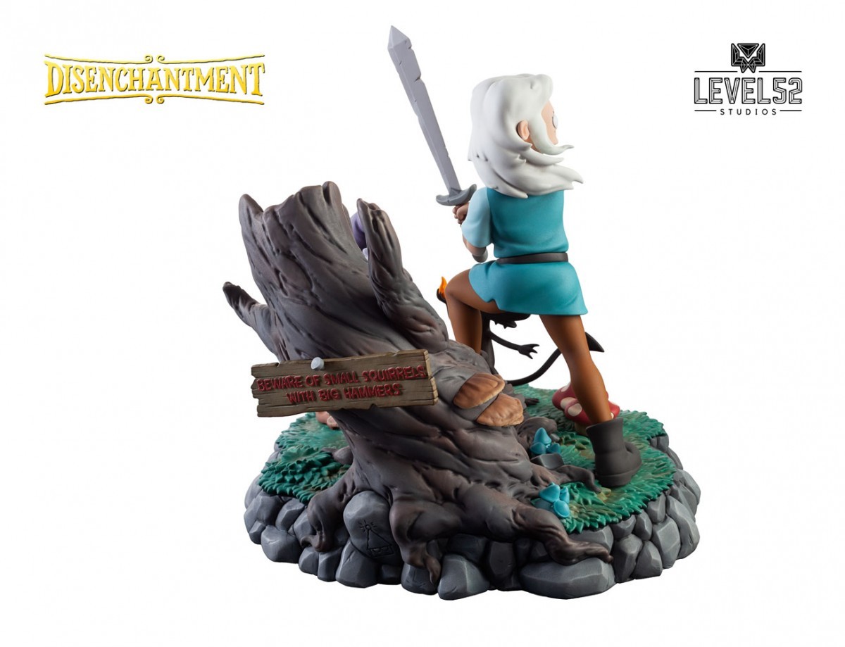 This free-spirited princess of Dreamland has plans of her own—which she’ll get to after a few beers at the tavern. Level52 Studios and the creators of the Netflix Original show Disenchantment are proud to present The Princess, The Elf, and the Demon, a uniquely charming and highly collectible statuette diorama! Princess Bean leads the charge through the Enchanted Forest with her uncouth crew in tow; naive elf companion Elfo and puckish personal demon, Luci. Those small squirrels with big hammers don’t stand a chance.