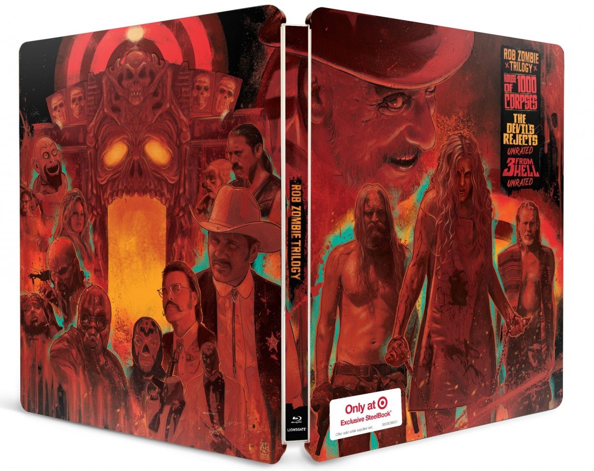 Lionsgate has announced the Blu-ray Steelbook release of the ‘Rob Zombie Trilogy’ which includes all three instalments from the director’s Firefly trilogy – House of 1000 Corpses, The Devil’s Rejects, and 3 From Hell. It goes on sale this September, exclusively at Target, priced at $34.99; check out the cover artwork and details below…