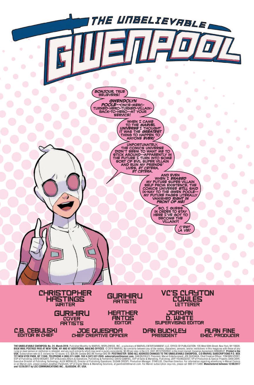 Gwenpool #24 is out on January 10th, priced $3.99.