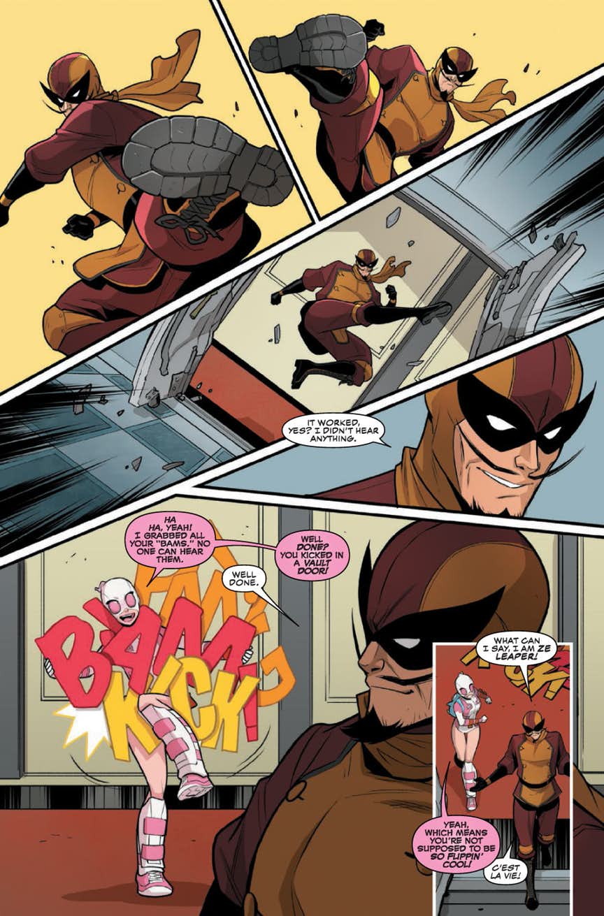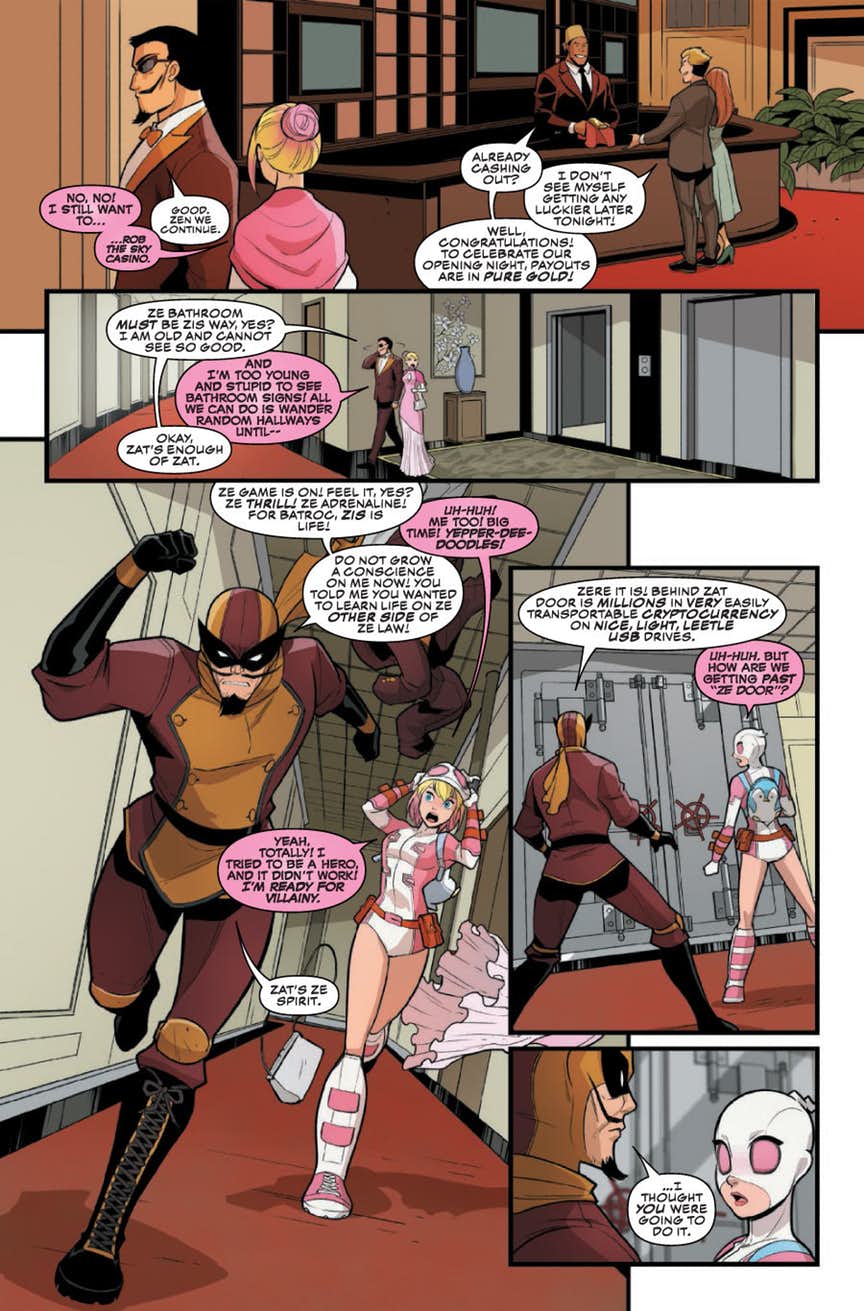 LOST IN THE PLOT PART 1! Gwen’s got a new bag of woes she’s battling and it looks like time is not on her side…But when life’s got you down you can always turn to your friends! Especially one who plans on robbing one of Manhattan’s high-class casinos! Gwenpool and Batroc–back together at last!