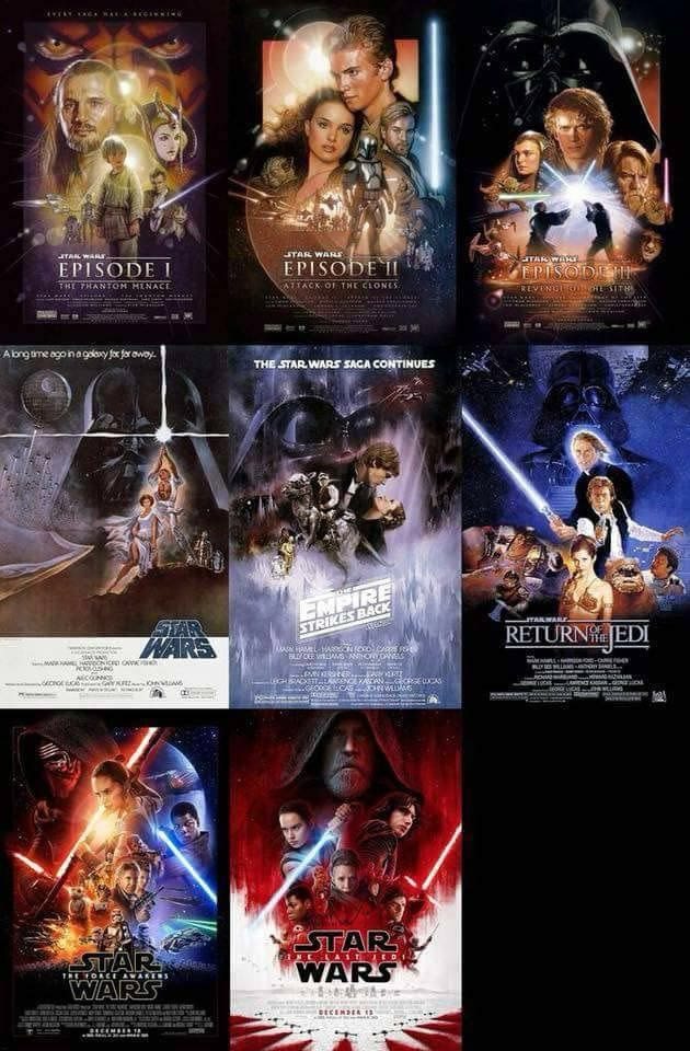 Well, we now have a new fan theory pointing towards an evil Luke Skywalker based upon the posters for the previous Star Wars movies, which have a villain looming in the background – much like Luke Skywalker is in The Last Jedi poster…