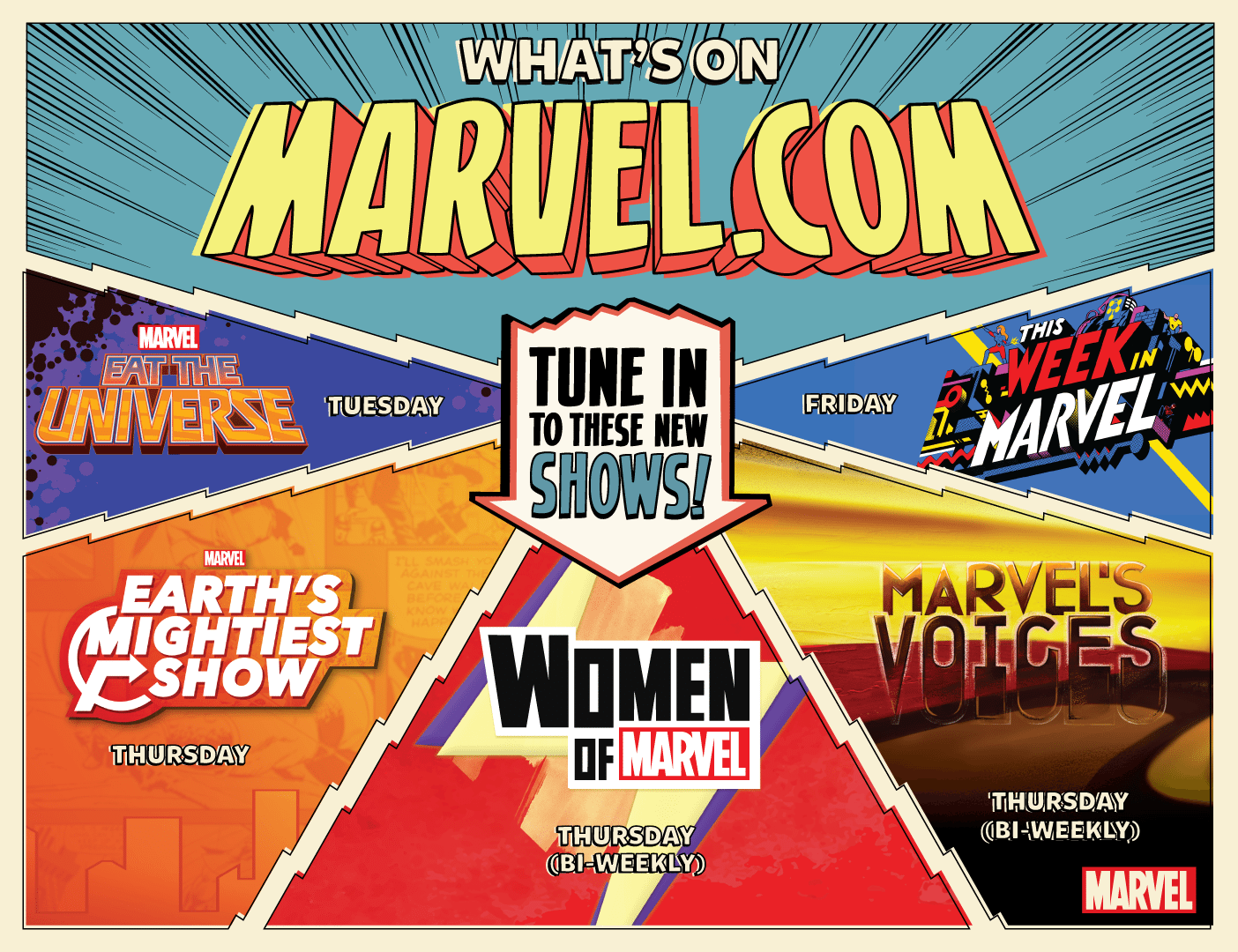 These new digital series include relaunched versions of its continuing popular shows such as This Week in Marvel and Women of Marvel, and new series like Earth’s Mightiest Show, Marvel’s Voices, Marvel’s Eat the Universe and Marvel’s first-ever scripted podcast Wolverine: The Long Night for fans to enjoy.