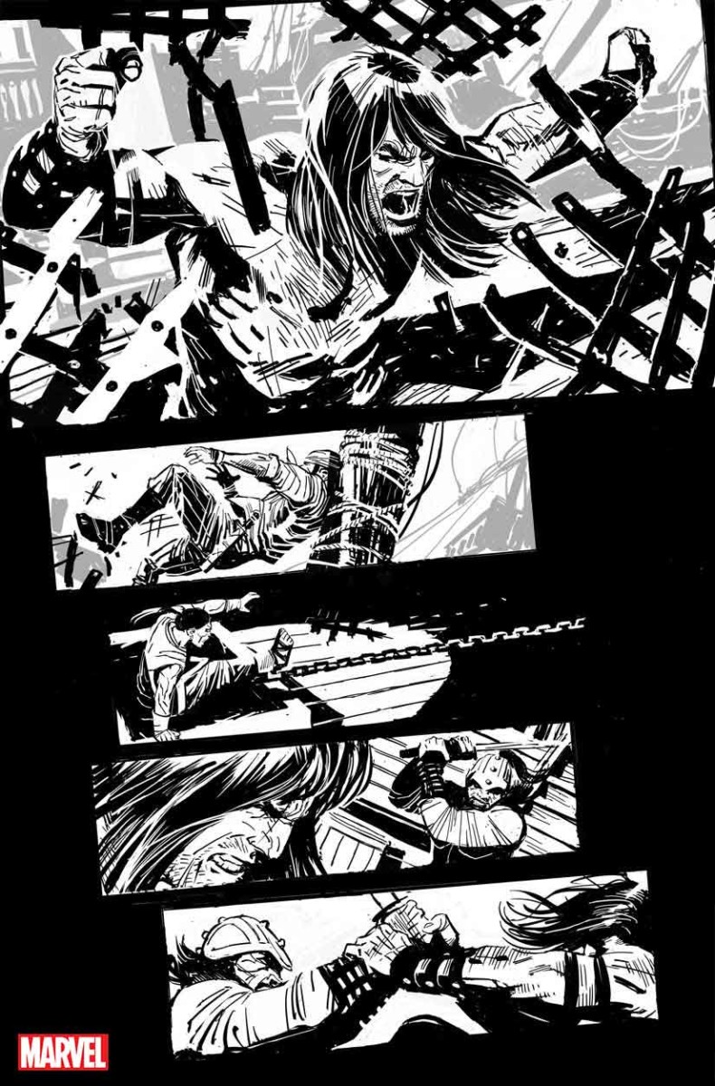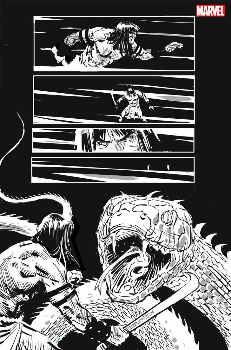 “I’m truly honored to have my work presented in this black and white format, in the greatest tradition of Conan and the artistic greats that fueled our imaginations for so long,” added Garney. “It’s been a hope of mine for a while now — since I was illustrating Daredevil even — to see it shown this way, as I’ve felt this style I’ve developed is probably best represented in black and white. I’d like to thank Mark Basso and Marvel for making it happen, Gerry Duggan, Richard Isanove and Conan properties as well, and huge thanks to the fans who have shown me so much support for Savage Sword and my work in general. I hope you really dig it!”