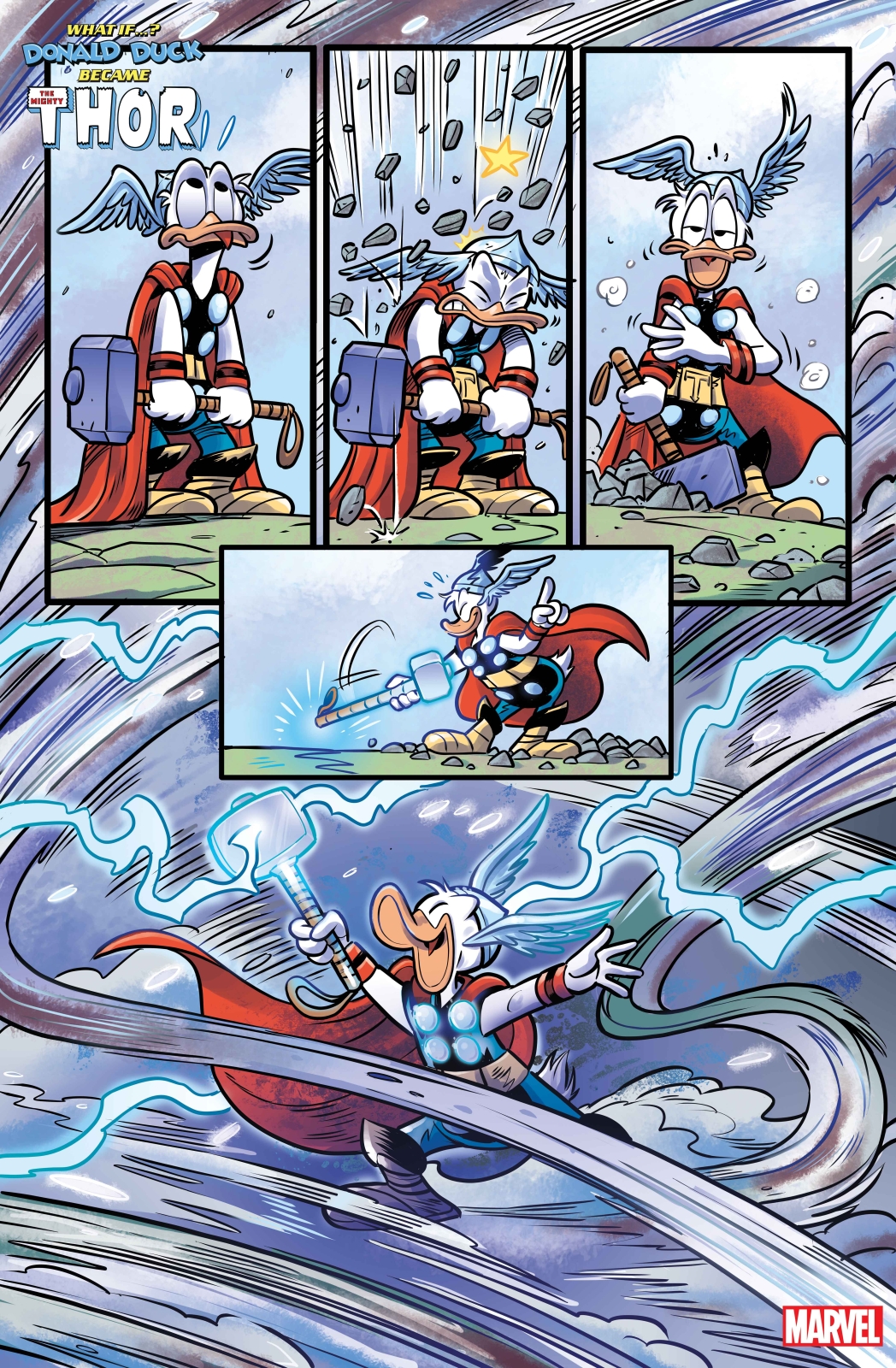 Fresh from assuming the mantle of Wolverine this week, Disney icon Donald Duck is set to prove himself worthy in the next Disney and Marvel mash-up this September, and a first look preview of the upcoming one-shot What If…? Donald Duck Became The Mighty Thor #1 has been released online.