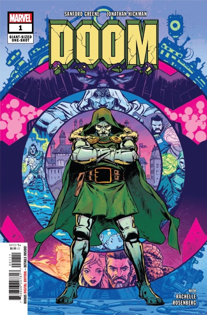 IN THE NEAR FUTURE…DOOM ALONE MUST SAVE THE MARVEL UNIVERSE! Legendary creators Jonathan Hickman (ULTIMATE SPIDER-MAN, G.O.D.S.) and Sanford Greene (Bitter Root) send Doctor Doom on a journey unlike any he has undertaken before! With Valeria Richards at his side, Doom goes on a quest to harness more power than any human has ever wielded before in order to try to stop Galactus from bringing about the death of the universe!