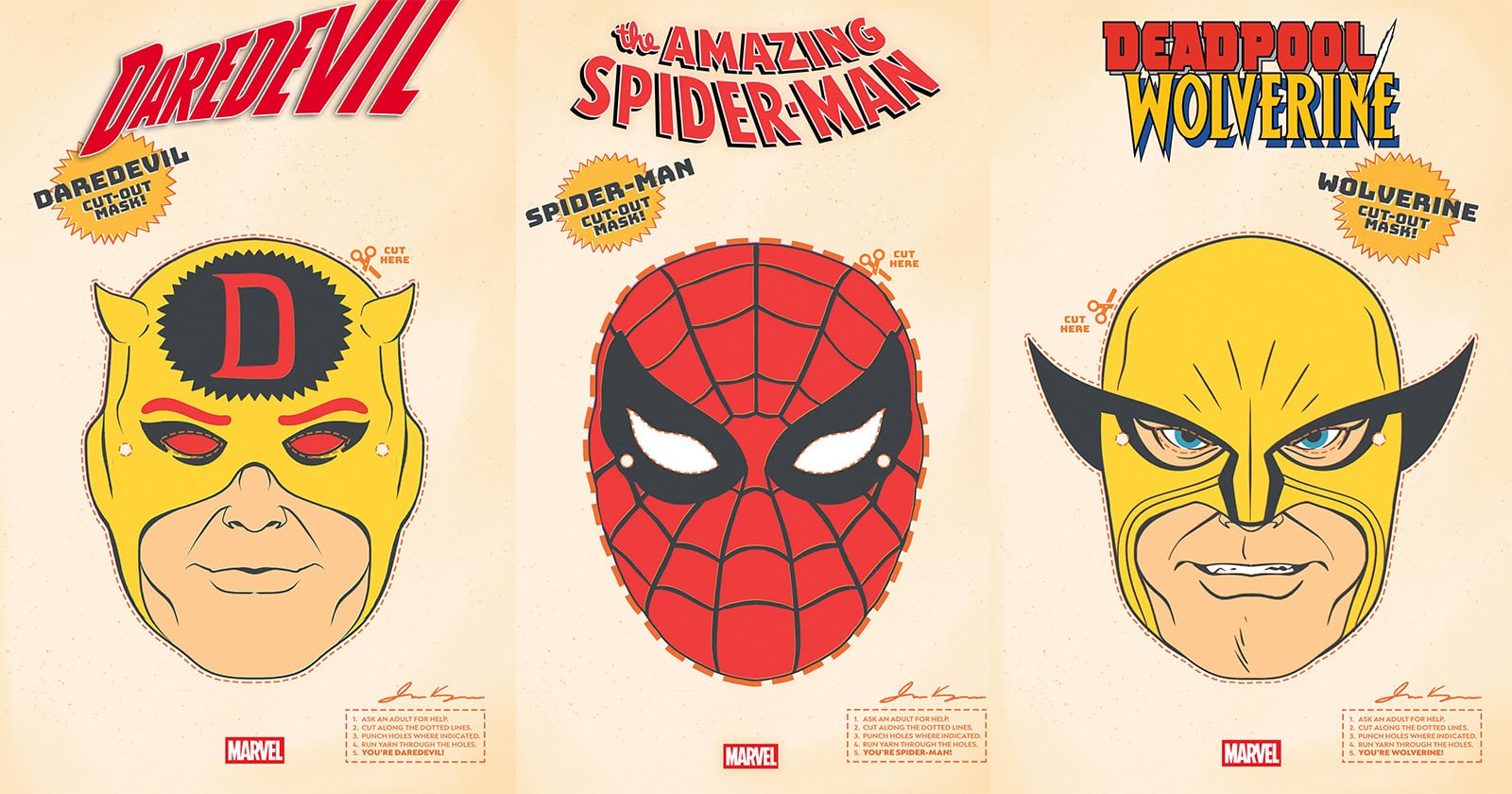 Marvel has announced that it will be going old school this fall as it celebrates the classic cut-out Halloween masks of the 1960s with a series of Retro Halloween Mask variant covers from artist James Kerigan which will grace fifteen titles throughout the month of September.