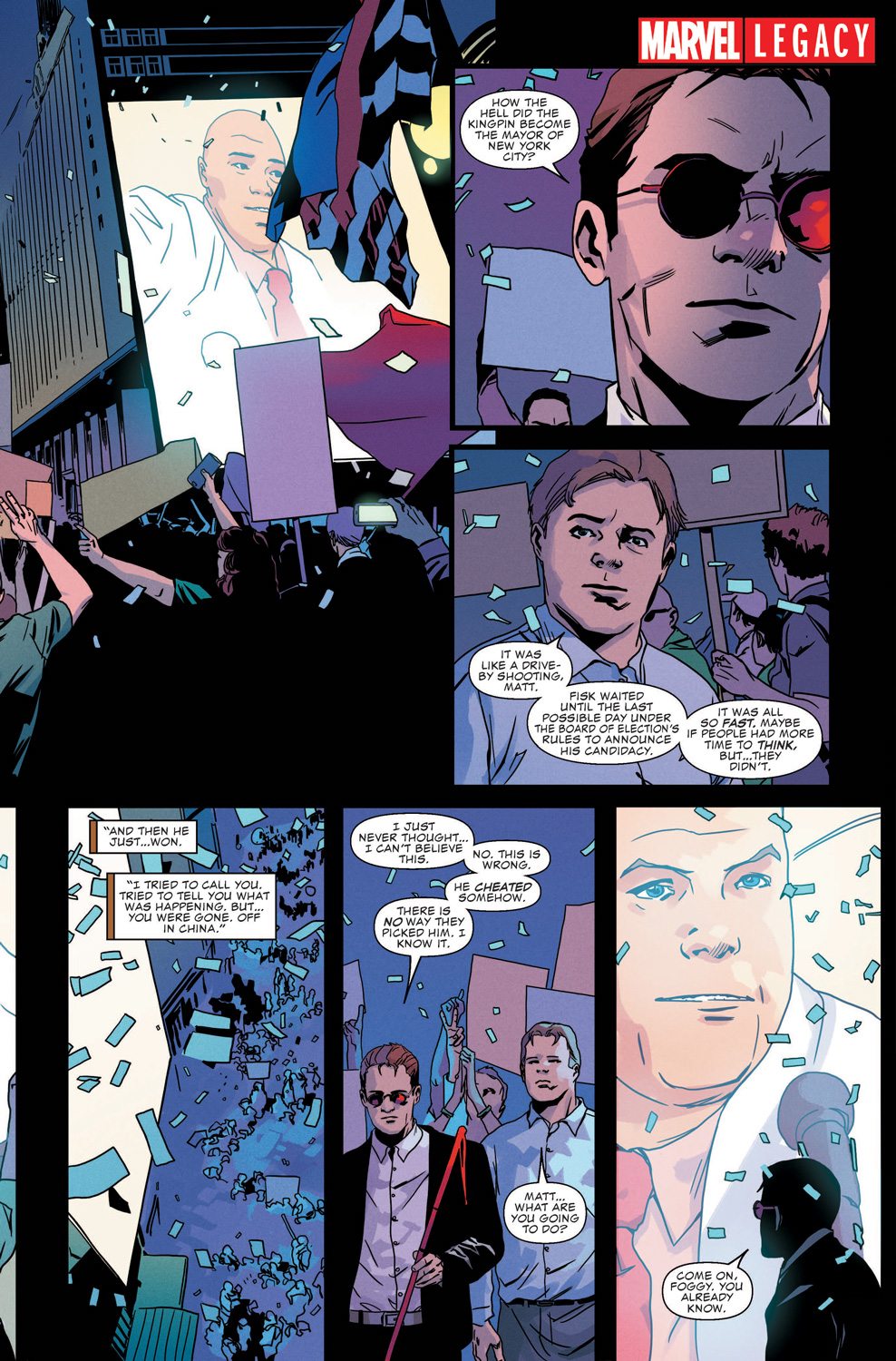 There’s a new mayor in town…Mayor Fisk, that is. After his rise to the top, Matt Murdock’s classic foe takes center stage as Marvel Legacy hits DAREDEVIL #595, written by Charles Soule with art by Stefano Landini.