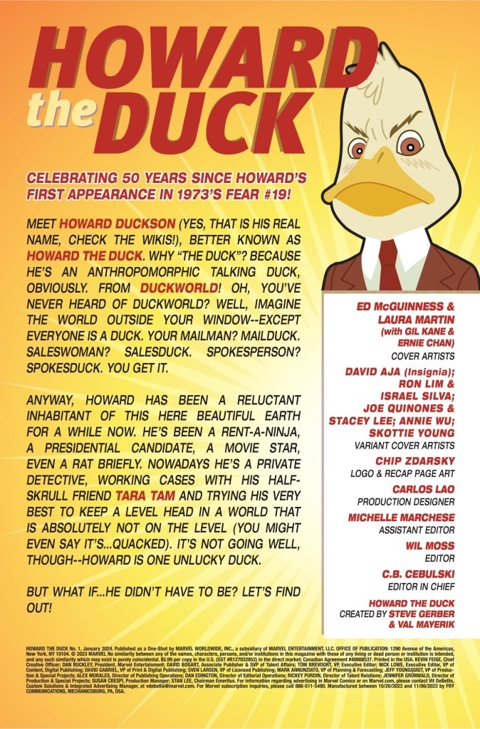 Marvel Comics celebrates the 50th anniversary of Howard the Duck this coming Wednesday with the release of an all-new one-shot comic, and you can check out the official preview right here…
