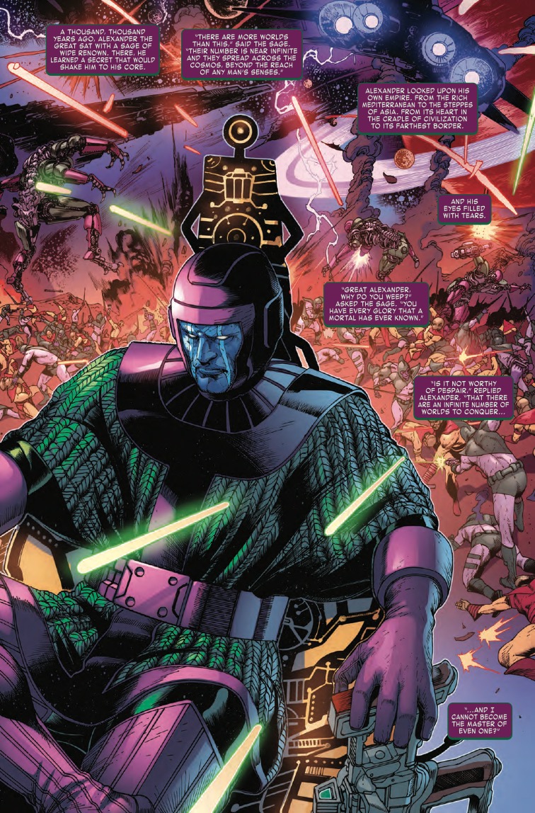 The man called Kang the Conqueror has been a pharaoh, a villain, a warlord of the space ways and even, on rare occasions, a hero. Across all timelines, one fact seemed absolute: Time means nothing to Kang the Conqueror. But the truth is more complex. Kang is caught in an endless cycle of creation and destruction dictated by time and previously unseen by any but the Conqueror himself. A cycle that could finally explain the enigma that is Kang. And a cycle that begins and ends with an old and broken Kang sending his younger self down a dark path…