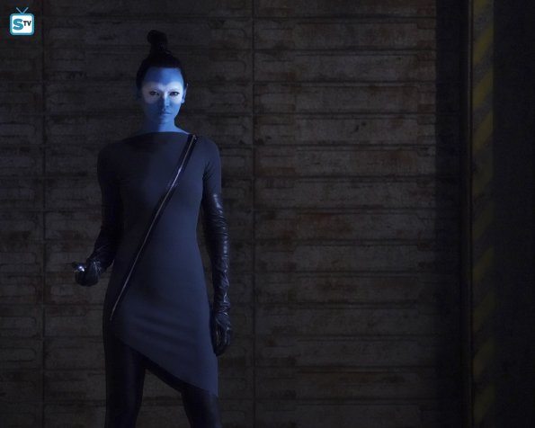 Kasius’ dinner party for his bidders gave an even greater look at the various intergalactic powers operating in this time. I love even getting glimpses of the costumes and make-up donned by these beings, expanding the diverse look of the MCU. It was also pretty empowering to see Fitz spar words with these people adding a sense of integrity and fearlessness to his alias Boshtok the Marauder. This eclectic party of individuals got to play audience to two impressive and exciting fight scenes, both in the previously seen gladiatorial pit. The first being May vs. Ben and though I was certain neither would die the scene was tense to watch while boasting some great choreography. It was also very satisfying to see May keep up with a telepath; she always manages to be awesome even when she loses. This of course leads to Ben’s death at the hands of Sinara due to May’s very existence. Her presence uncovers Daisy and Simmons’ lie and the fact that Ben covered for them. Though the telepath was only on the show a brief time, somewhat minimizing the impact of his death, this act showed the consequences of defying Kasius. It also added fuel to the fire in Daisy, emotionally charging her encounter with Sinara while further antagonising Kasius. Daisy’s subsequent fight with orb wielding Kree was appropriately thrilling, making nice use of their abilities while still showcasing some great hand-to-hand combat. As easy as it is to root for Daisy there was a small part of me that pitied Sinara as she was more or less sent to slaughter by Kasius. I loved that she dropped her grace and mystique and we could see real emotion as she fought Daisy. I sincerely hope this is not the last we see of her.