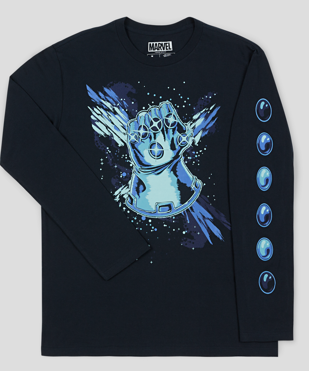 The second shirt is found in the Loot ‘Wear’ Crate.  This Infinity Gauntlet Shirt, is a Thanos Infinity Gauntlet Long Sleeve Tee. Rule the Galaxy in style in this Thanos shirt featuring the coveted Infinity Gauntlet and the six Infinity Stones lined up the sleeve!