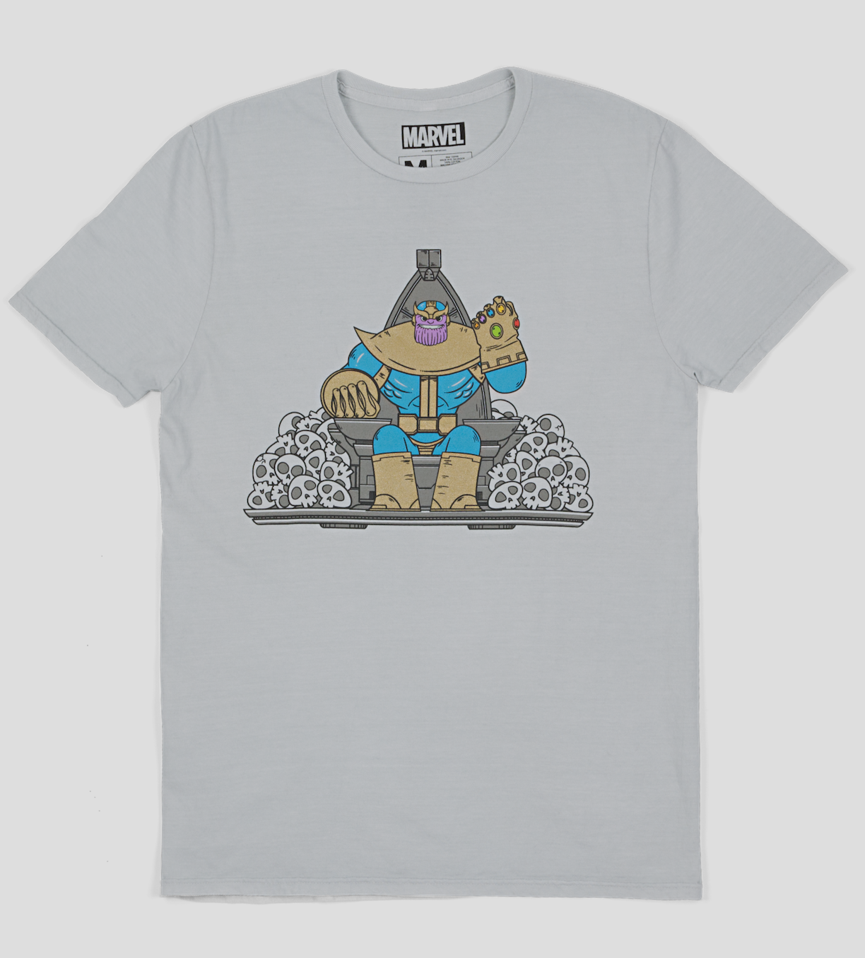 Inside this month’s Loot Crate is a T-Shirt designed by JO3BOT (who designed Marvel’s NYCC 2012 shirt), which shows The Mad Titan, Thanos reclining in his terrifying throne having completed his latest DIY project (collecting the fabled Infinity Stones and conquering the Marvel Universe!).  This shirt is officially licensed from Marvel and exclusive to Loot Crate.
