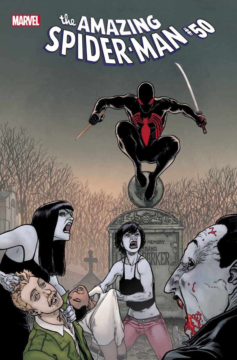 AMAZING SPIDER-MAN 50 SPIDER-MAN VAMPIRE HUNTER HORROR VARIANT COVER by AARON KUDER with colors by JORDIE BELLAIRE