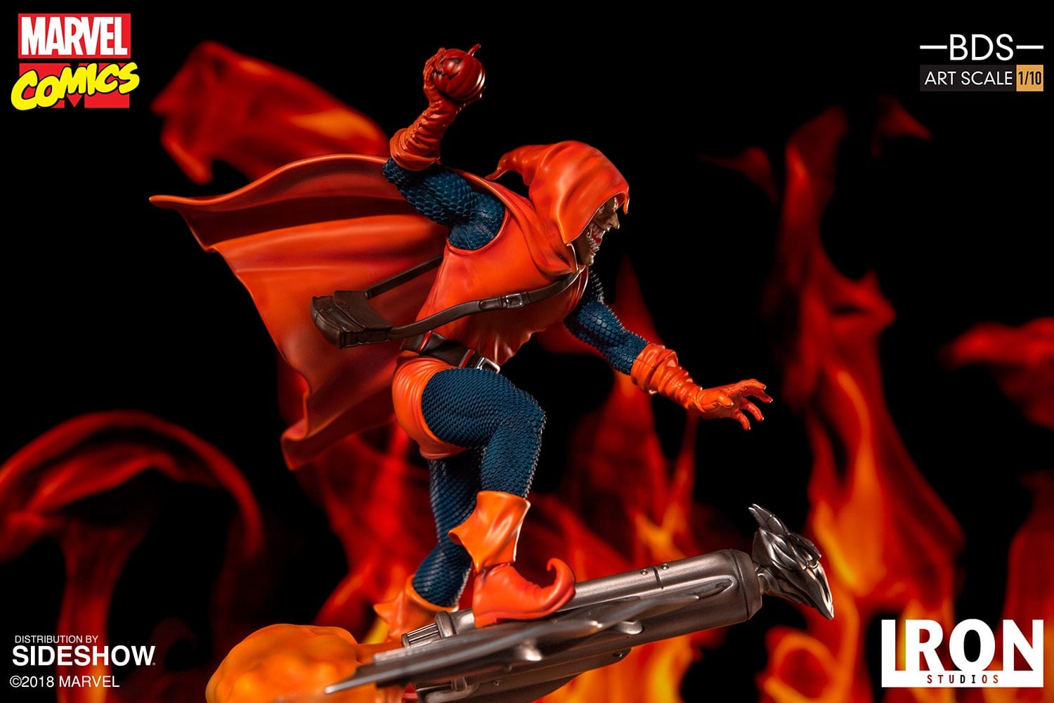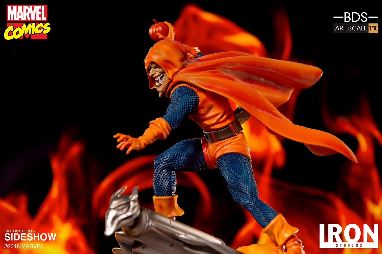 Sideshow and Iron Studios are proud to announce the newest villain in the Battle Diorama Series Art Scale 1:10 line – the Hobgoblin! Representing one of Spider-Man’s greatest enemies, the Hobgoblin comes with a fully detailed base complete with billowing smoke! A must-have for fans of Marvel Comics!