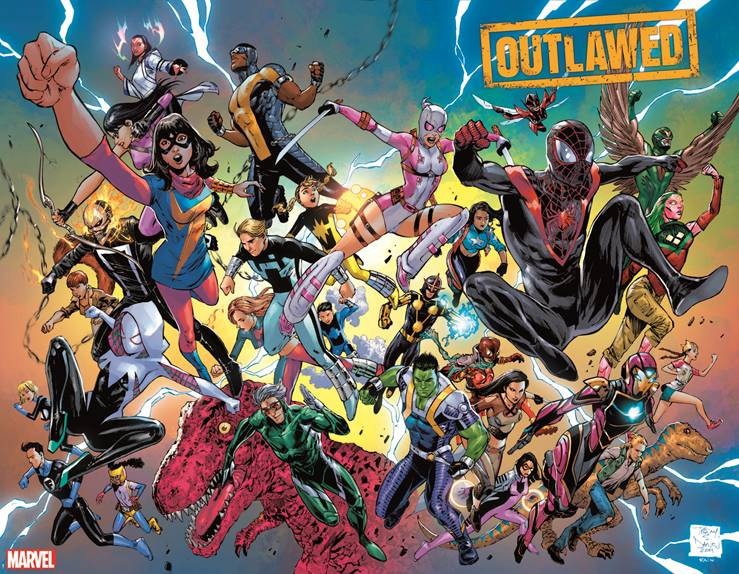 Ahead of its release in March, Marvel has unveiled an epic wraparound variant cover for Eve L. Ewing and Kim Jacinto’s Outlawed from artist Tony Daniel, which brings together Marvel’s most promising young heroes!