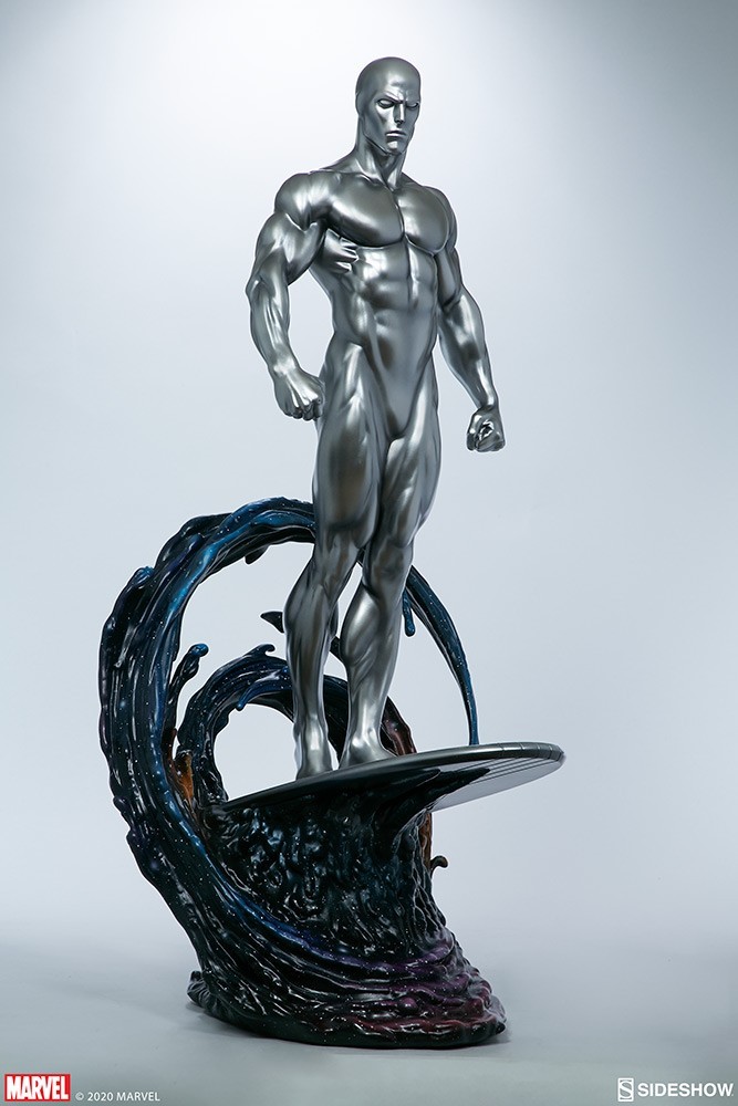 The Silver Surfer Maquette measures 25.5” tall as Norrin Radd traverses the stars on his signature silver board, emerging from a swirling portal in search of worlds for Galactus to consume. Stoic and noble of spirit, the Silver Surfer’s metallic appearance is instantly recognizable across countless galaxies, portending danger in his cosmic wake.