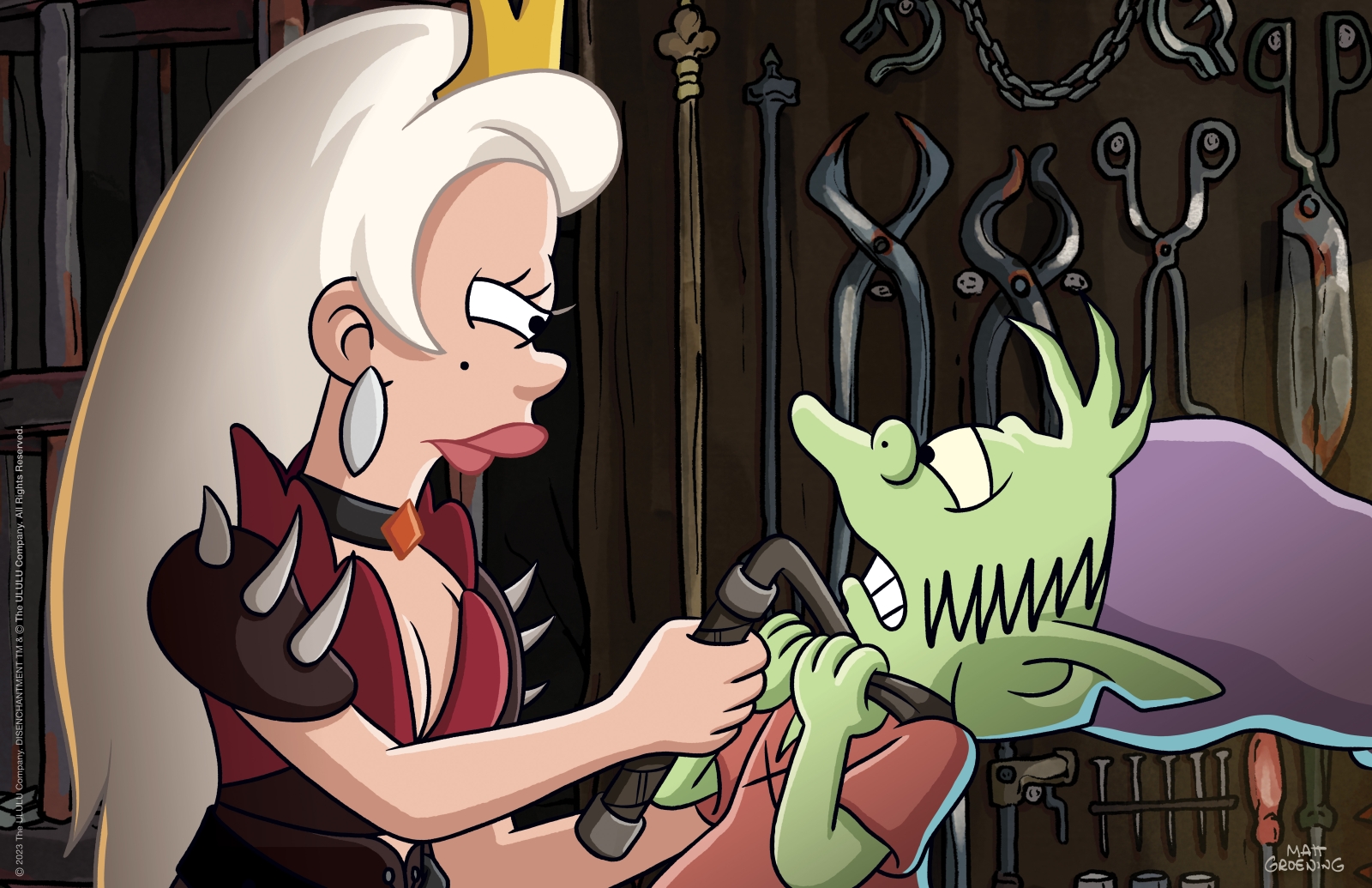 It all endeth here. The misadventures of hard-hitting, hard-drinking Queen Bean, her feisty elf companion Elfo and her personal demon Luci culminate in an epic battle for Dreamland in the fifth and final installment of Matt Groening’s comedy fantasy series Disenchantment.