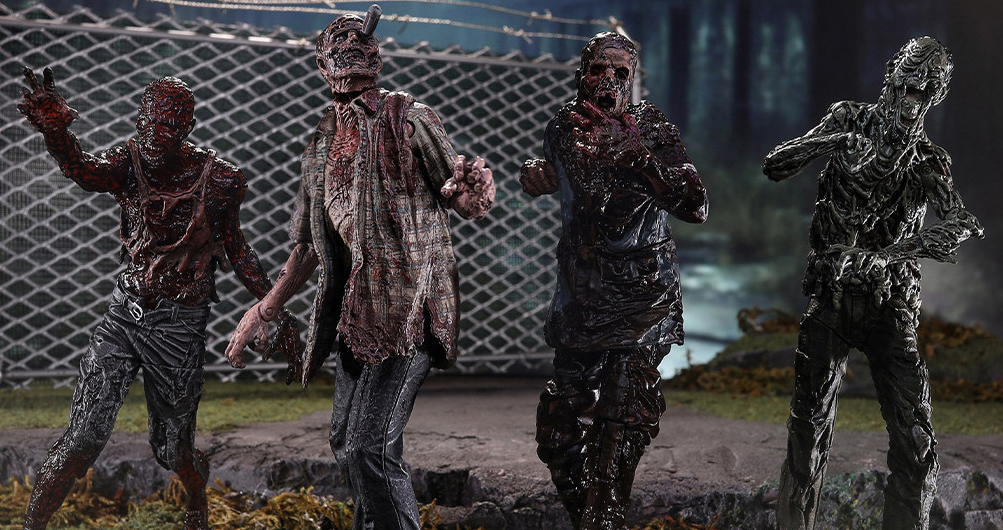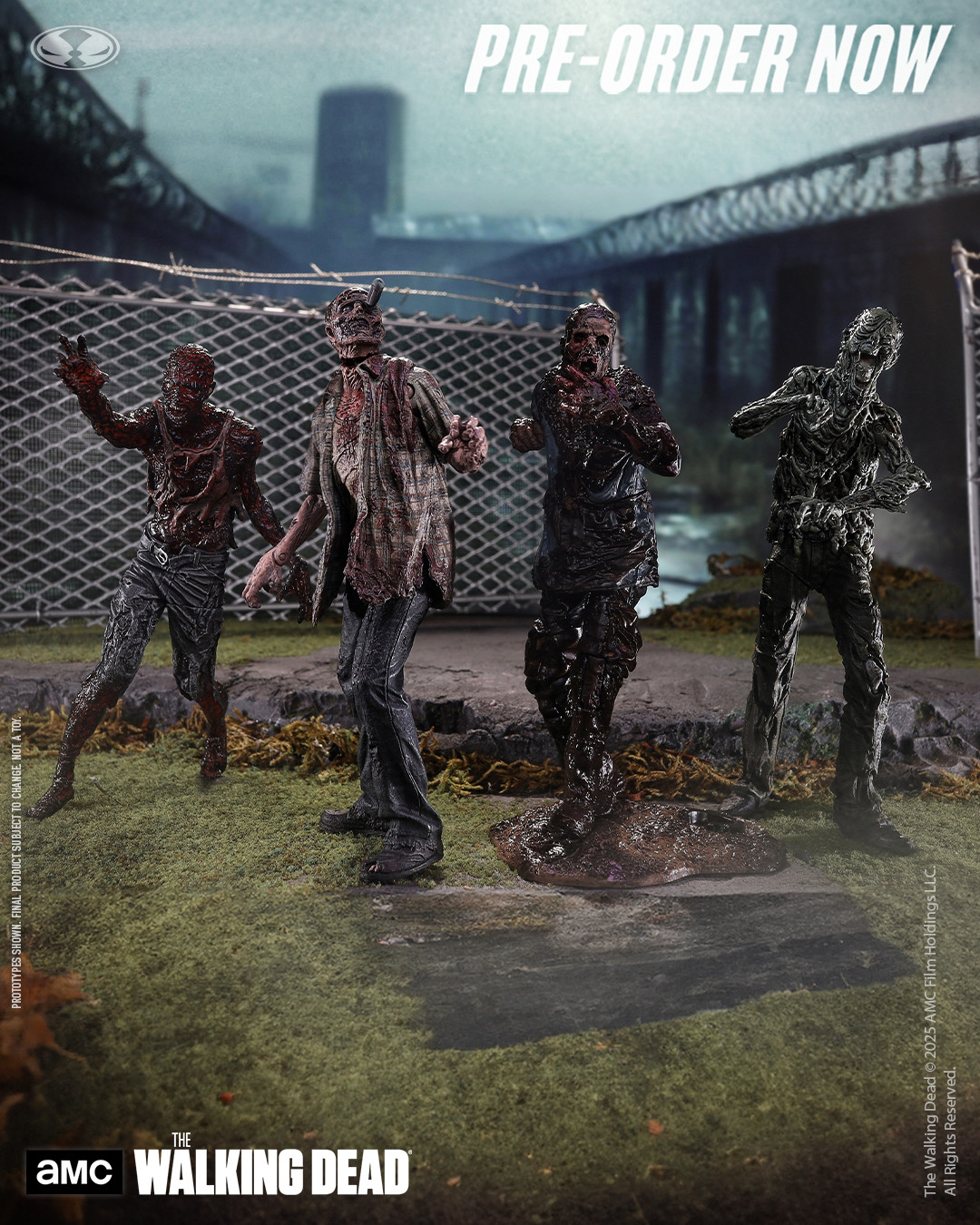 Set Includes 4 Walkers: RV Walker, Water Walker, Mud Walker and Charred Walker with accessories and bases. Based on the hit AMC series THE WALKING DEAD.