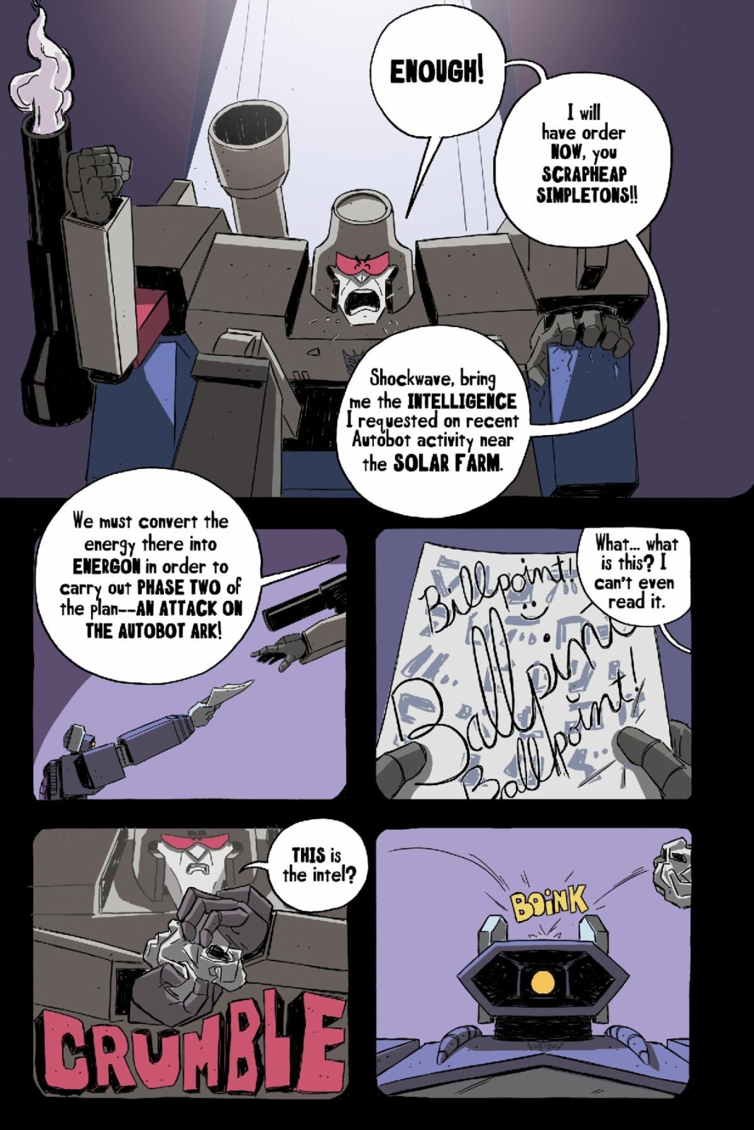 The Decepticons are known for being bad…but Ballpoint is truly the worst –the biggest failure of them all. After the latest attempt to take down the Autobots goes horribly wrong, he’s kicked out of the Decepticons, for good! Will Ballpoint be able to prove his worth by defeating the Autobots all by himself? Or will he keep failing and find that being the “best” is…More than Meets the Eye?