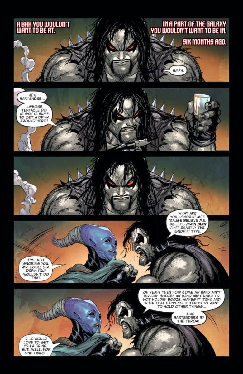 Pull up a chair, ya bastiches-it’s time for Uncle Lobo’s Infinite Hour! It’s your chance to let the Main Man Lobo-tomize you with familiar yet freaky stories of the DC Universe, exactly as he remembers them: with blood and guts and exxxtreme gratuitous violence! Tell yer comics guy to put you down for alllll the copies!