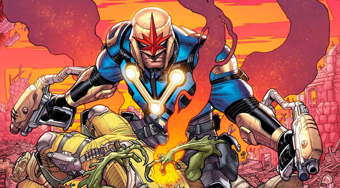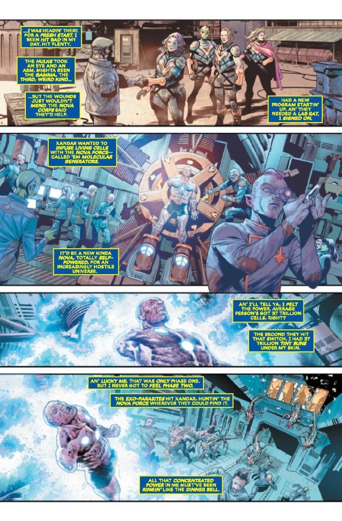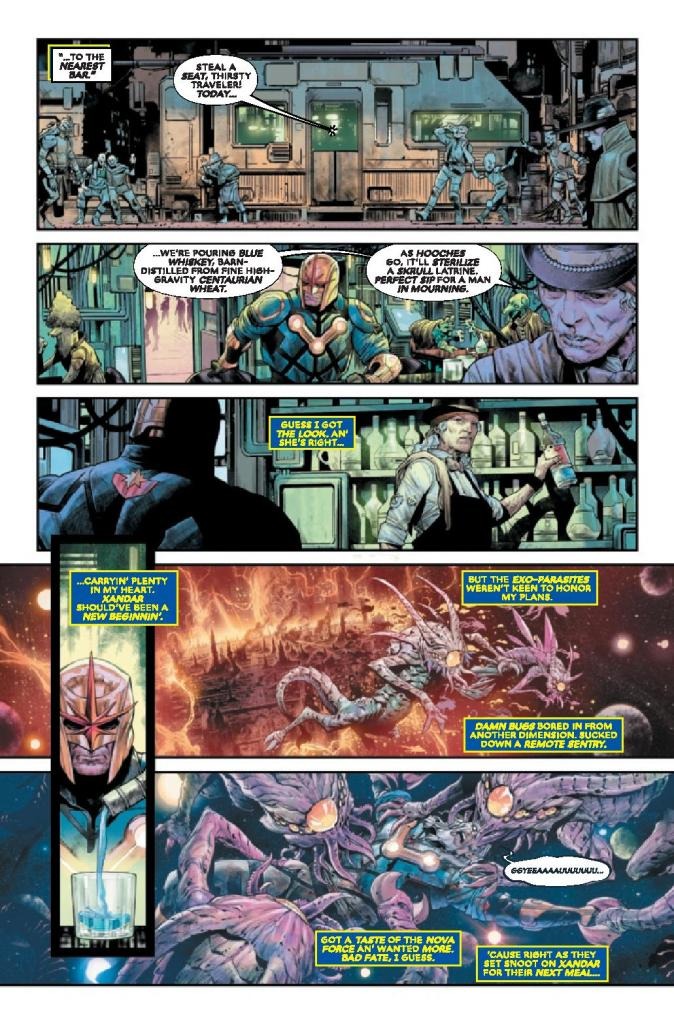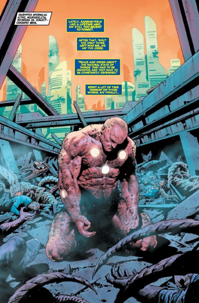 WHO IS THE LAST NOVA?! A remote town on a remote world is devastated by the ravenous, unforgiving KNULL SET, a gang of raiders and thieves obsessed with offering all life up to the darkness. But that all changes when a stranger comes to town, a stranger from the stars who answers to his own code. THE LAST SURVIVOR OF XANDAR…the LAST NOVA. Who is the Last Nova, and what great tragedy does he carry on his back? Is he the inheritor of the NOVA CORPS or its destroyer?