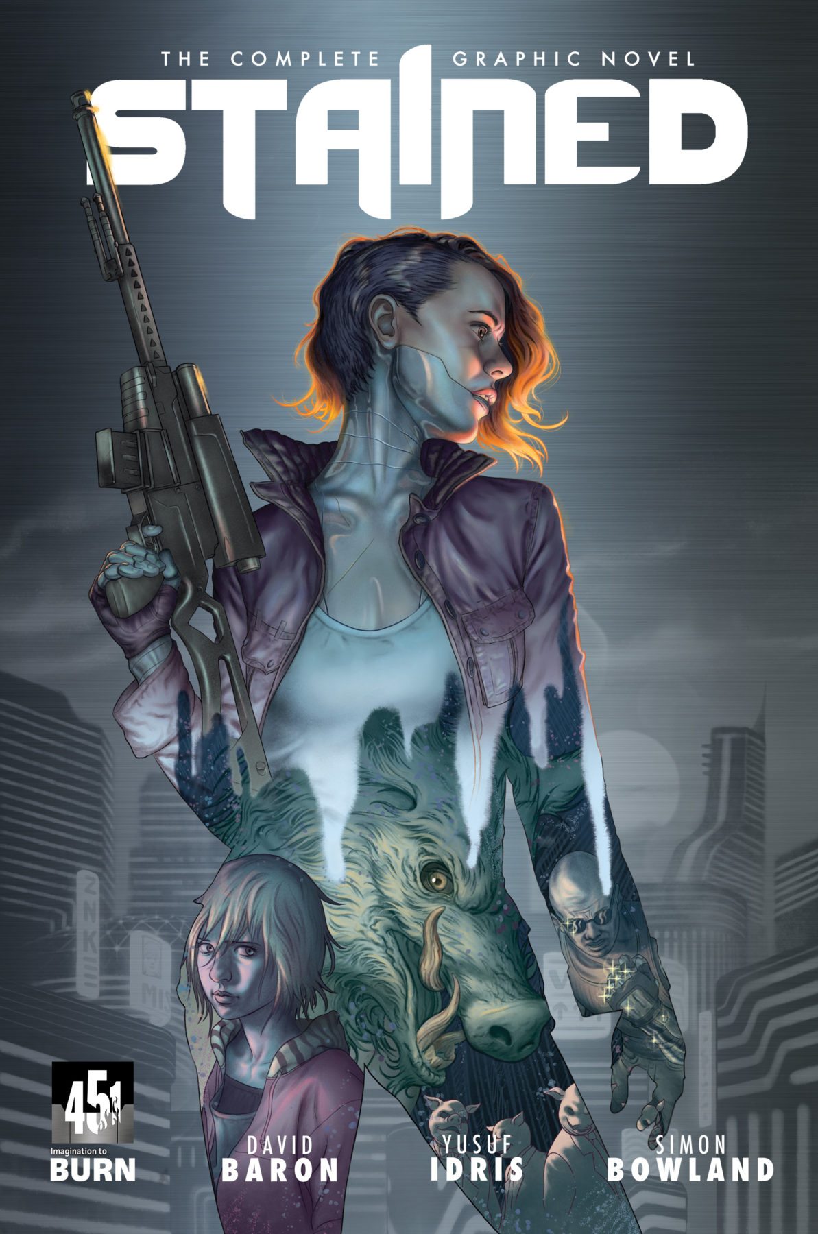 Stained – Meet Emma London: recovery artist and bounty hunter for hire. She is strong, possibly indomitable, and did we mention…part machine. Emma enters dark places that no one else will go to track down the subhuman criminals lurking in the underbelly of society and bring them to justice. From David Baron, 2016 Harvey Nominee and top comic professional spanning over twenty plus years with highlights including GREEN ARROW: YEAR ONE, PLANETARY, THE AUTHORITY, JLA, DETECTIVE COMICS (THE BLACK MIRROR), GREEN LANTERN, DIVINITY and BLOODSHOT: REBORN.