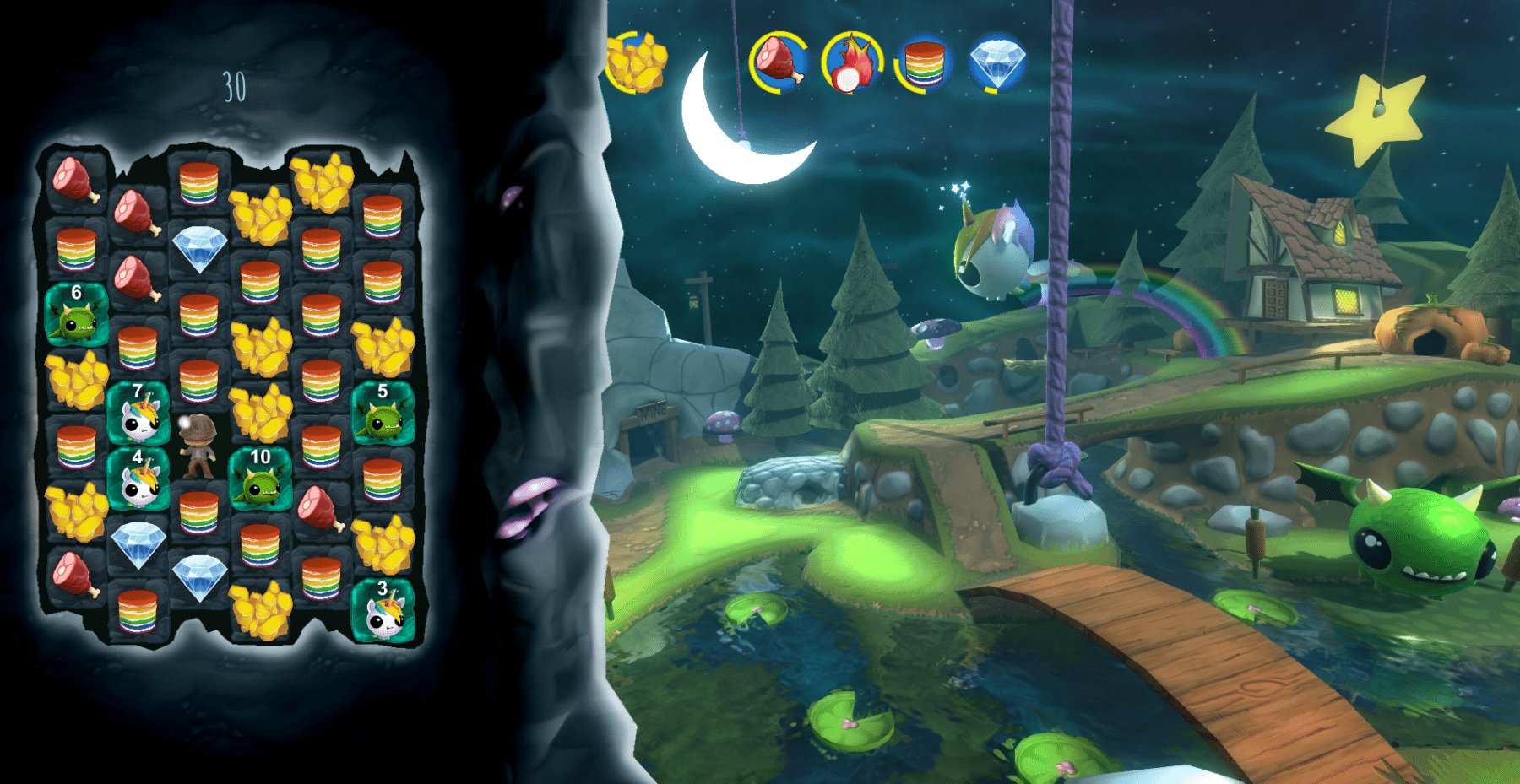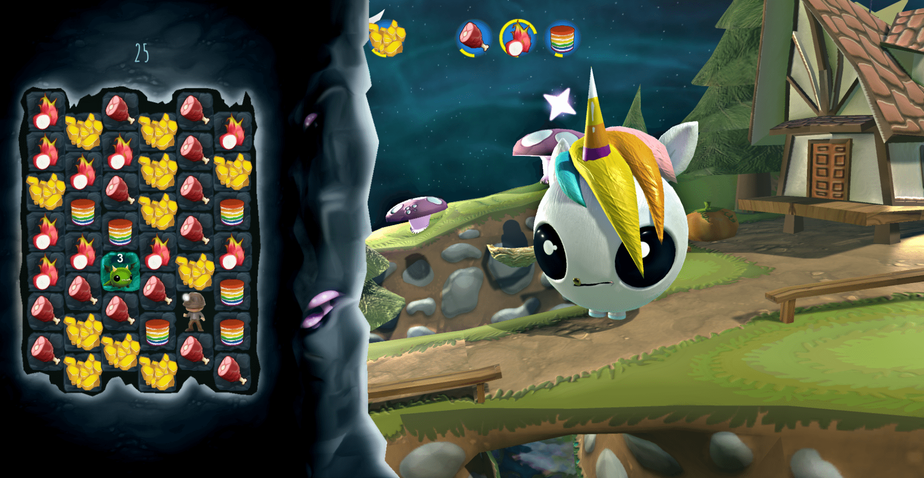 AllMine features a series of mining-themed tile-matching games used to satisfy the cute, whimsical creatures known as Adoraboos, who live in a funny and edgy world of discovery. Players can discover new Utopias and Adoraboos, unlock aesthetic improvements and customizations, and advance their creatures and lands to higher levels. Players are encouraged to spend Jewelz in-game to improve and personalize their experience
