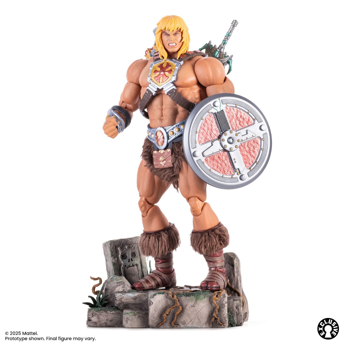 Available for a limited time, this deluxe He-Man™ 1/12 Scale Figure – Timed Edition includes exclusive extras like an additional portrait plus the Grayskull Castle Figure Base!