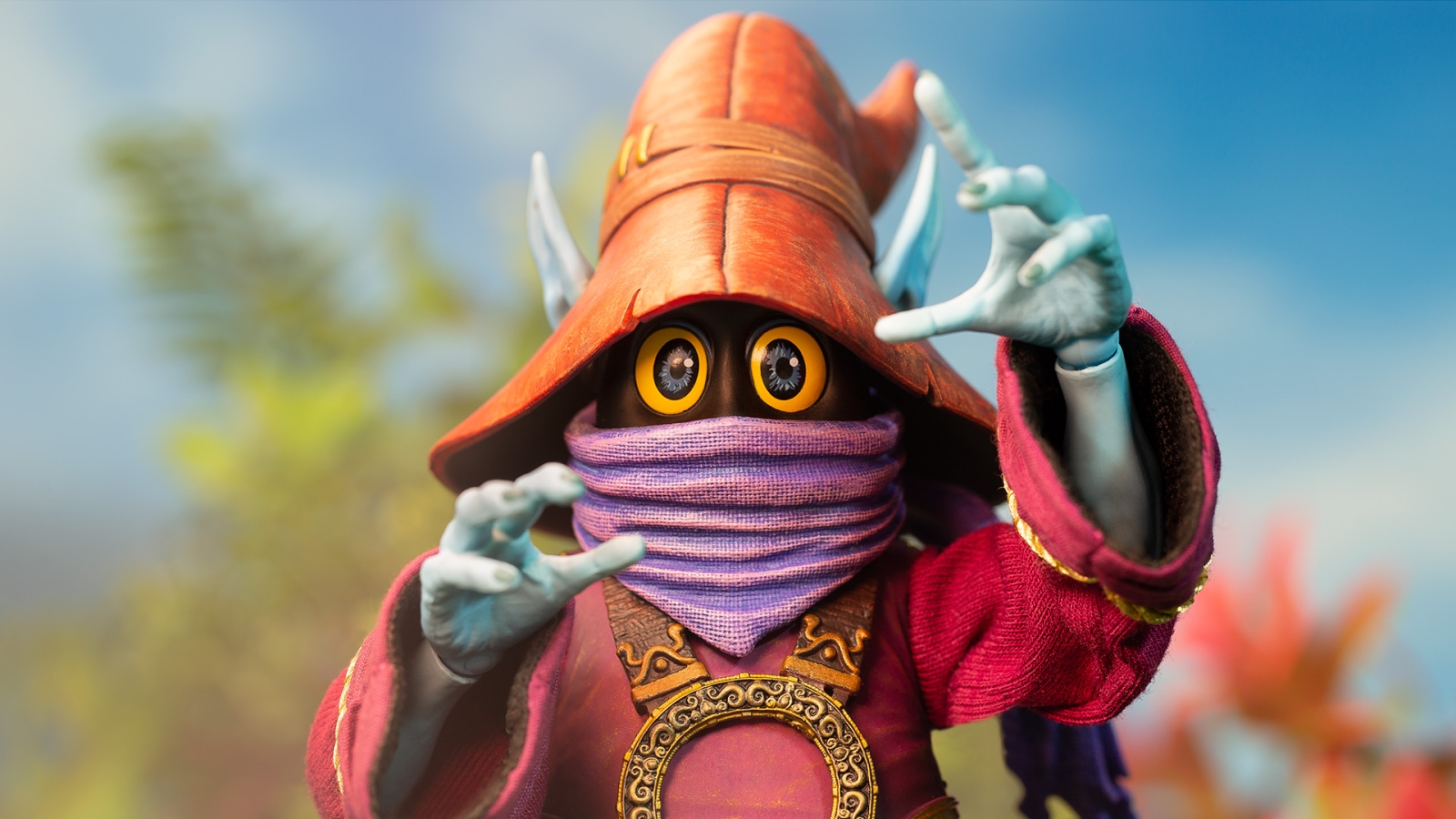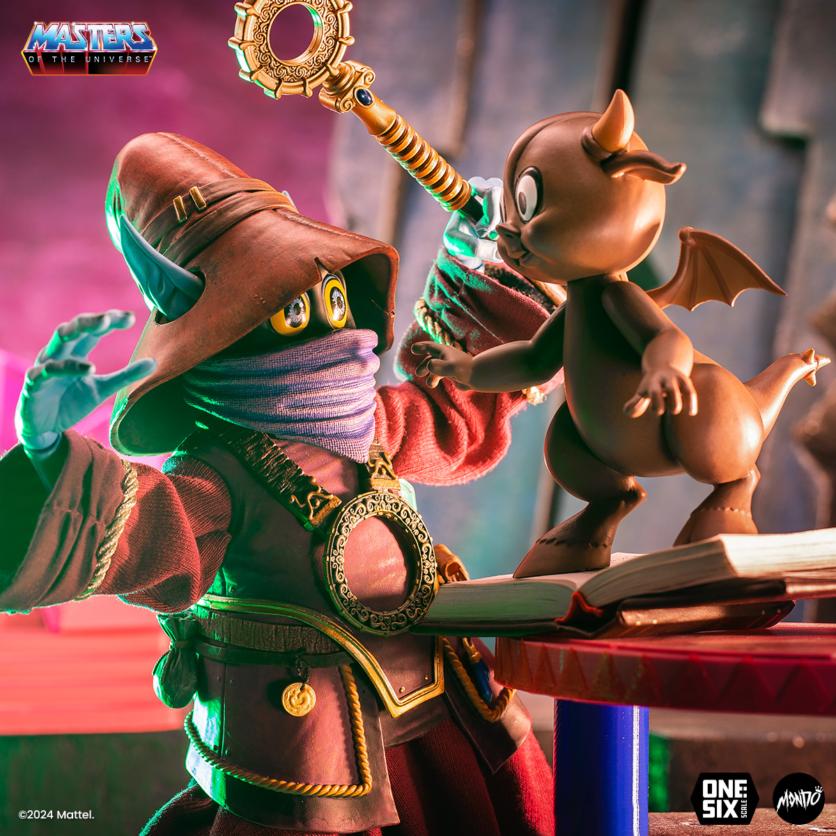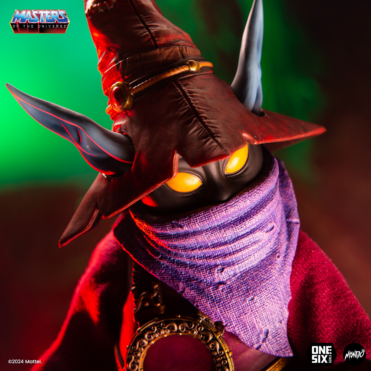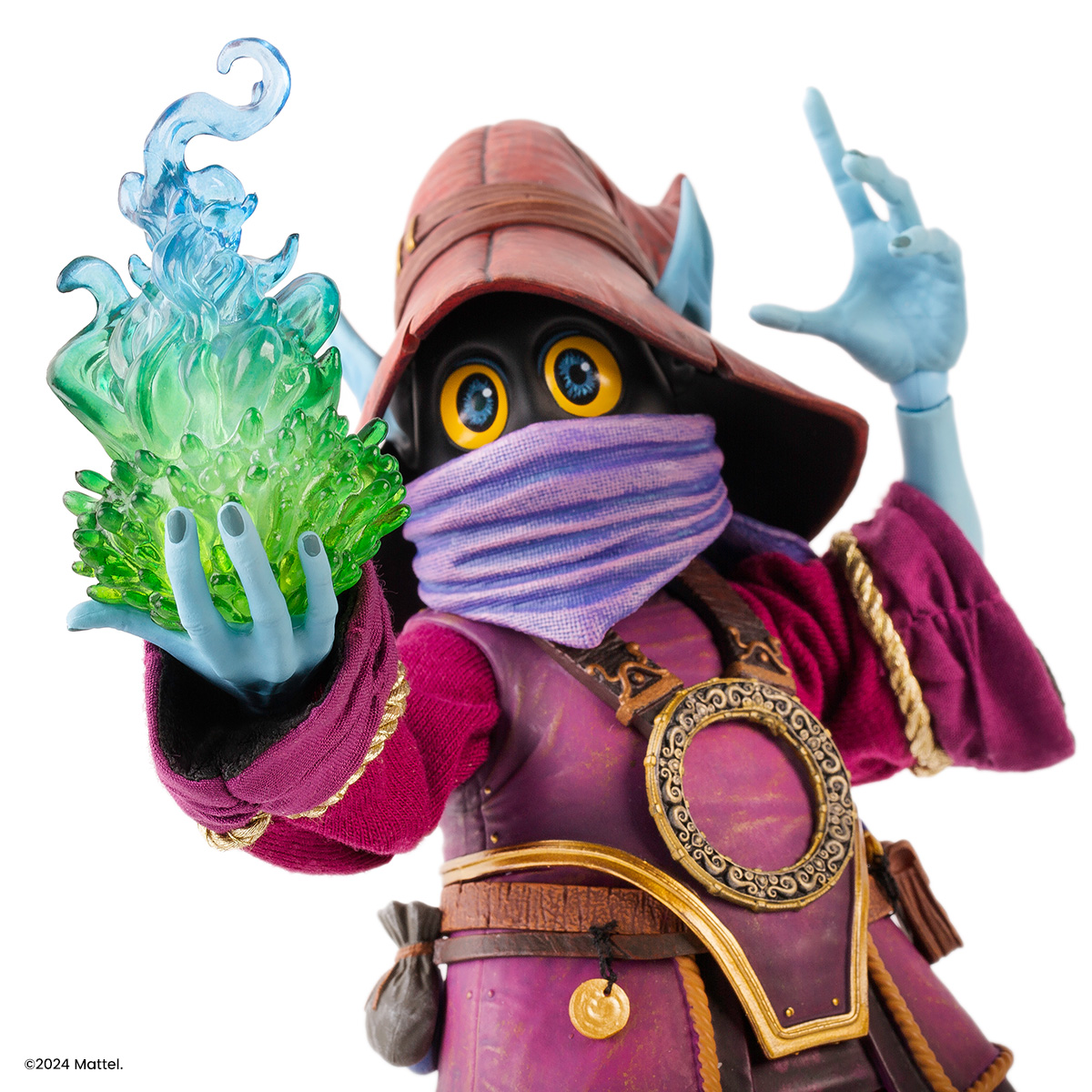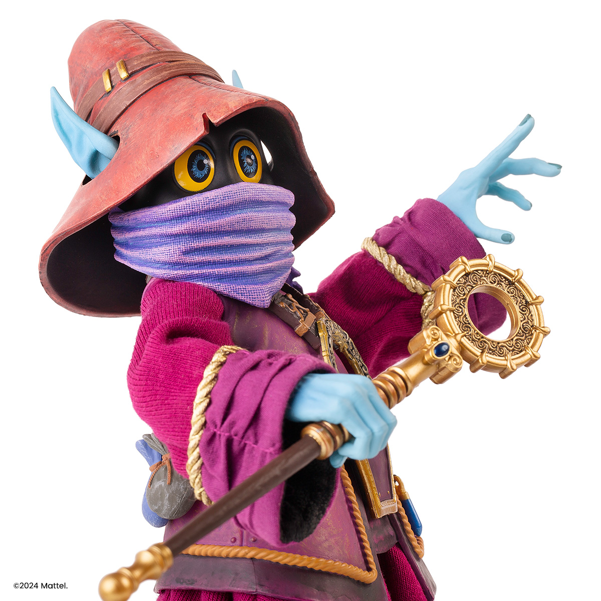 Our Orko 1/6 Scale Figure comes complete with a scepter and fabric robe as well as a slew of swappable hands and portraits, including the never-before-produced unmasked Orko. The figure also provides a first glimpse at Orko’s legs! (Yes, Orko has legs.)