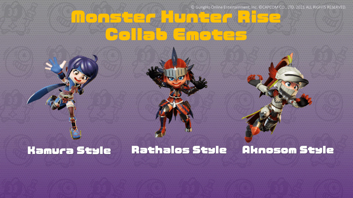 A new collaboration event begins today in Gungho Online Entertainment’s Ninjala that sees the arrival of Capcom’s Monster Hunter Rise in-game. Throughout the event, running until 26th May, players will be able to collect a variety of collaboration items, including avatar costumes, decorations and more.