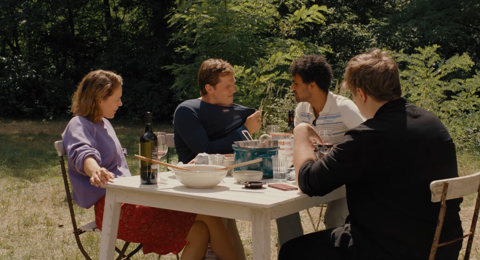 Arriving at the vacation home with his longtime friend Felix (Langston Uibel), an aspiring photographer, Leon spends most of the time passive-aggressively whining that he can’t get any writing done for various reasons that, once again, not only comes from a place of insecurity but a BS justification to his peers for his lack of productivity when he knows the truth deep down inside that the story is not very good. This isn’t to say that he is not meant to be a writer and incapable of writing something of noteworthy quality, just that he takes the honesty he is aware of, pushing it further down so that he can outwardly blame everyone else. So, the fact that this is all wrapped up in a thorny love square only makes matters more complicated and amusing.
