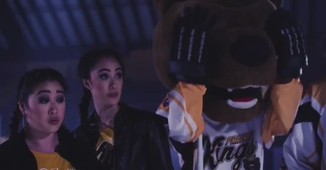 Every aspect of Ahockalypse is twenty shades undercooked. Stunt coordination has actors pulling punches and camera angles completely wrong if clear misses were to be hidden, which makes Mascot Ninja’s kung-fu no saving grace (flanked by two Asian fans who know karate, of course). Actors sport zero chemistry and fumble through lines even they have trouble comprehending (lead Jesse Rennicke seems physically incapable of keeping a straight face). Midnight movie accentuations are either mindlessly overdrawn (DJ and Wave’s “It’s not gay if we kill each other!” argument) or moronic to the point of no comprehension (DJ starts ripping slapshots like sniper bullets that explode zombie’s heads). Johnson Jr. wants to make a frathouse movie about MILF and wang jokes, but apparently couldn’t sell it as anything but a horror comedy – that might explain why zombies are such an afterthought here.