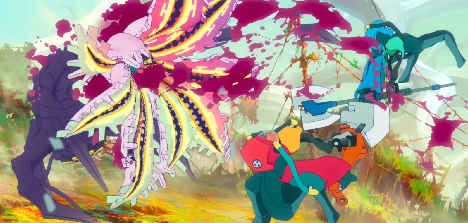 Along the way, Rita makes an acquaintance with Keiji (voiced by Natsuki Hanae), an introverted gamer, helpless on the battlefield, stuck in life, and experiencing the same time loop. When one of them dies, the day starts over. Together, they are forced to work together to figure out how to end the loop and change themselves for the better. While this take on All You Need Is Kill is light on story and emotional stakes, it’s lean and to the point, elevated by some truly trippy, colorful visuals and breathtaking battle sequences.