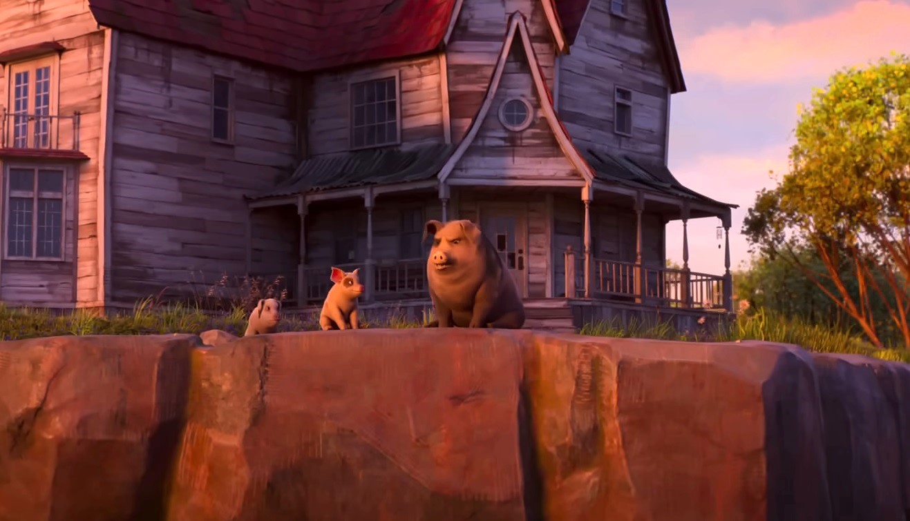 Nevertheless, it is up to Lucky (Gaten Matarazzo, playing a new character) to work through his fracturing friendship with Napoleon (slowly coming around to questioning everything he is peddling) and his loyalty to the other animals, such as a long-time hard-working horse pal, Boxer (voiced by Woody Harrelson), while managing a crush on one of a pair of oinker twins voiced by Iman Vellani. The quest also puts him up against some greedy humans (voiced by Steve Buscemi and Glenn Close), as the other pigs begin to blur the line between humans, beginning to walk on two legs, drink alcohol (referred to here as “naughty juice” for some inexplicable reason I don’t even want the answer to), become addicted to modern technology, crash cars into swimming pools, and become succumbed by a thirst for cash and material objects.