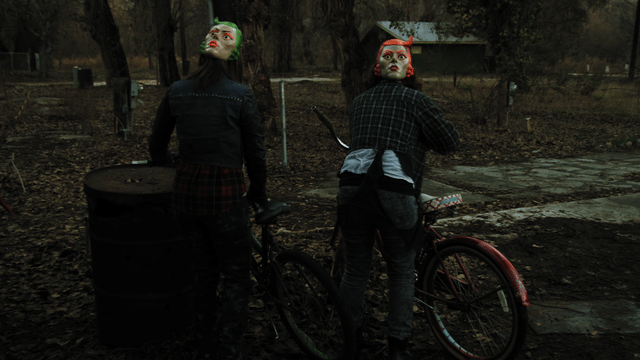 It’s Halloween and a married couple (Brea Grant and Graham Skipper) have moved into a new neighbourhood. As the day progresses, they begin to realise that their new neighbours, are something to be desired, which leaves them feeling a little on edge. On the other side of town, at the local trailer park, two young teens baring ‘scary’ masks, start terrorising anyone who is seemingly not celebrating Halloween. Oh and also generally anyone that annoys them.