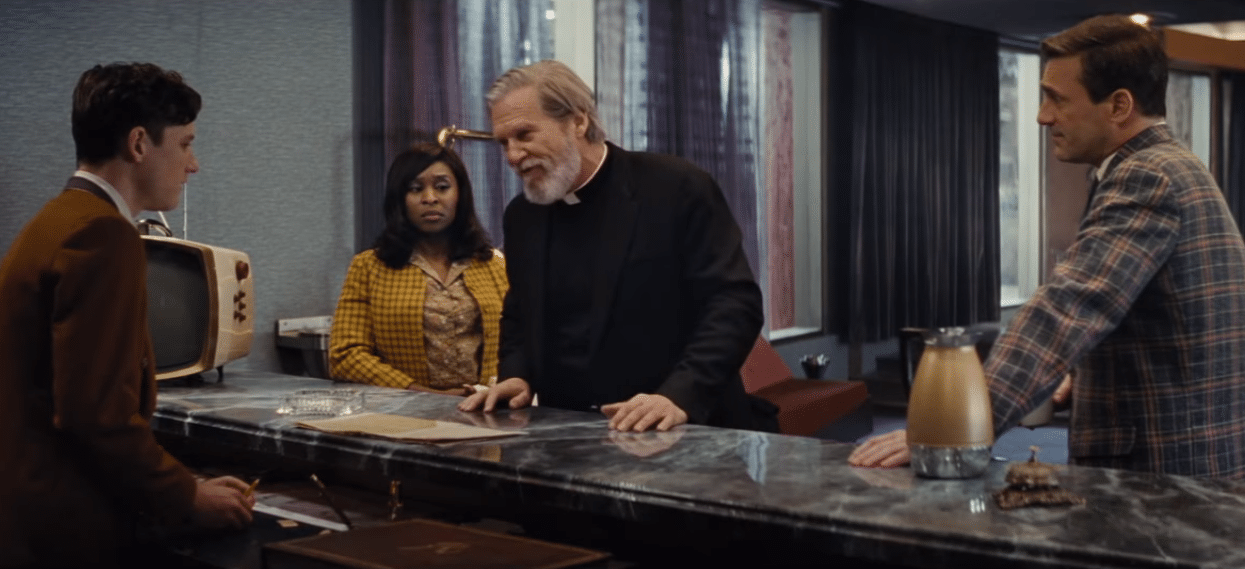 I’d love to tell you all of you fine readers some intriguing and notable details regarding the various pulpy personalities that make up writer and director Drew Goddard’s (making his sophomore feature here six years too long following the incredible deconstruction of the horror genre The Cabin in the Woods, but also putting his time as a writer on the hit TV series Lost to good use) Bad Times at the El Royale, but what’s the point? No one is who they say they are. Now, that doesn’t mean every person is looking to betray one another or is terrible in some way, as sometimes the facts being hidden are for understandable reasons. Other times, yes, they are just immoral and teetering between sane and insane, moral and corrupt, right and wrong, etc. Thankfully, one of the long night’s visitors is a priest.