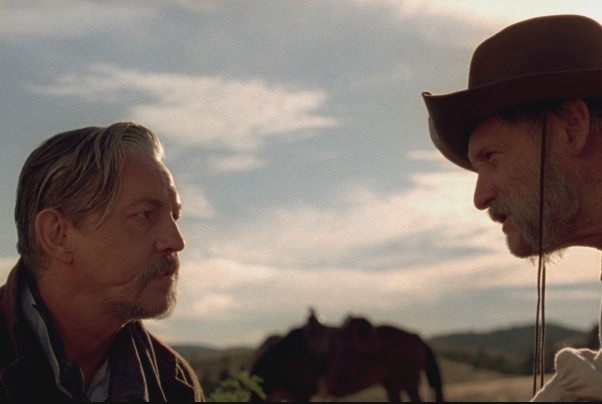 The murder of Lefty’s longtime companion, Peter Fonda’s Edward Johnson (soon to be the first ever Senator of Montana, packing his belongings for Washington DC and prepared to entrust Lefty with the duties of watching over his cherished ranch at the behest of his wife), comes suddenly as the pair are rounding up escaped horses out in the fields (more absolutely striking photography from David McFarland). Bullets randomly start flying quickly leaving Edward lifelessly tumbling off his horse with smattered brains.