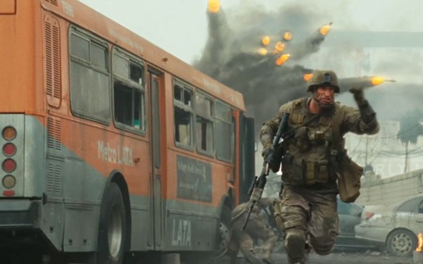 Aaron “Two-Face” Eckhart plays our main hero, Staff Sergeant Michael Nantz of the US Marine Corp. On the very verge of retirement, he is ordered to fall in with a group of young Marines sent to retrieve a small cluster of civilians who have been trapped by the unexpected attack of extra-terrestrials. I couldn’t help but wonder if he was thinking to himself, “FML” when he got the word he was going back into combat. What looks to be his last “Hoo-rah” takes place in, shocker, L.A. Looks like Kobe and the Lake show won’t be getting another chance to go for a title. Before you begin to think the aliens are Celtic fans, they have also invaded other major countries around the world. All of these places falling heavily and taking major losses at the hands, or whatever they use as hands, of these invaders.