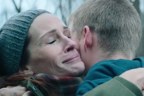 For whatever reason, Peter Hedges shifts Ben is Back from a study of how each family member is dealing with the return (Ivy is skeptical that he has control over himself, his stepfather played by Courtney B. Vance is unsure if it’s a wise decision to let Lucas stay the night, and we see how playful and caring Ben is with his much younger siblings) and the ways that addicts succumb to relapse. At one point, Ben deems it necessary to visit a focus group to kill the itch to start using again. With love and affection, his mother Holly (Julia Roberts) shadows his every movement, whether it’s going to the bathroom or trying on new clothes in the shopping mall, and yes, to the rehab meeting itself.