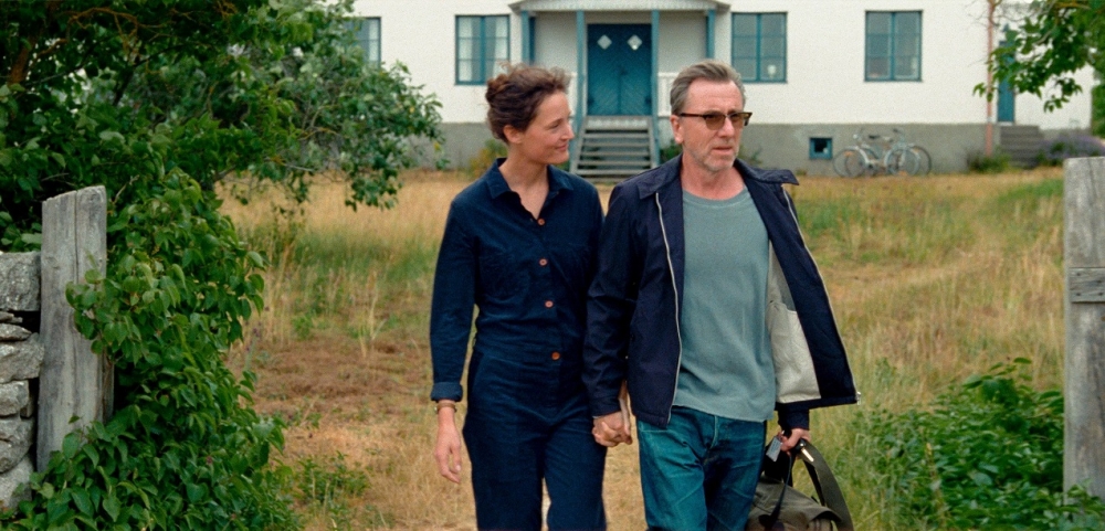 It begins with independent filmmakers Tony and Chris (Tim Roth and Vicky Krieps, respectively) starting their vacation (which doubles as a search for artistic inspiration) and heading into the Fårö summer resort, functioning as a museum for Ingmar Bergman. It’s populated with his private screening room, homes (including the one where Scenes From a Marriage was shot, providing the release of this film a bit more timeliness considering the ongoing remake starring Oscar Isaac and Jessica Chastain), student film centers, libraries, and various tourist attractions such as beaches. At one point, Chris comes into contact with someone who has never even heard of Ingmar Bergman, illustrating that beyond the island’s history is still a supremely gorgeous and serene haven.