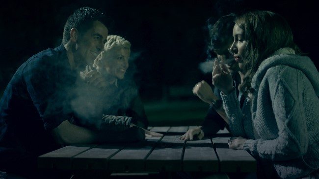 The final act is where things ramp up a bit and we do get a few kills but the film is quite dark – which is a good way to hide cheap special effects – and, one decent decapitation aside, most of the gore and demon effects that you do see really aren’t that great. After spending so long building up the finale the film also seems to want to rush the ending, killing off several characters in quick succession after setting up a few supernatural scares that don’t really go anywhere, and you get the feeling that there were some good ideas here that were possibly left on the cutting room floor in favour of quick and easy shocks.