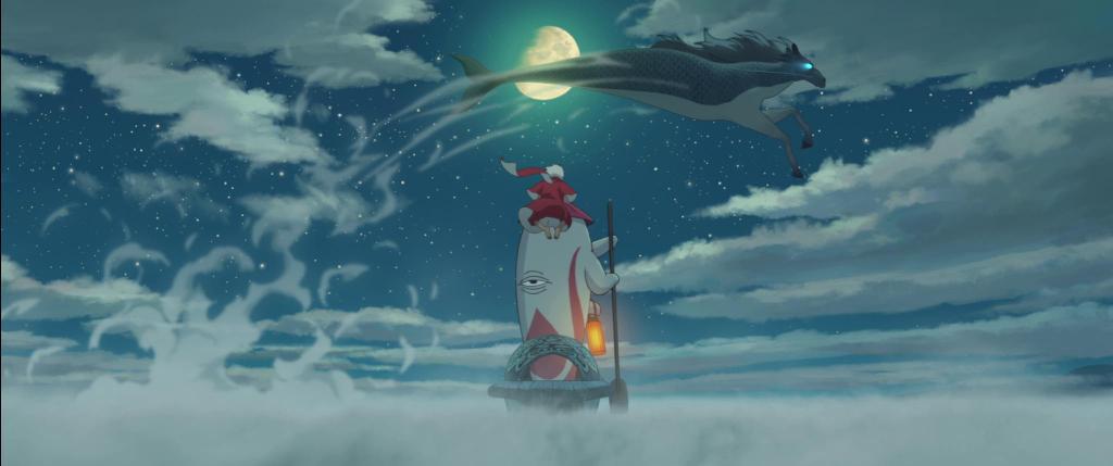 The landscapes that the characters inhabit, from colossal circular temples to snowy wastes, are beautiful. Broadly, the animation is spectacular. But a couple pitfalls do arise. The opening features a school of poorly-tweened CG whales. Also, the way the characters emote occasionally feels a shade rigid. Otherwise, the film treats its viewers to some seriously poster-worthy images that bear similarities to both classical Chinese paintings and the best of anime.