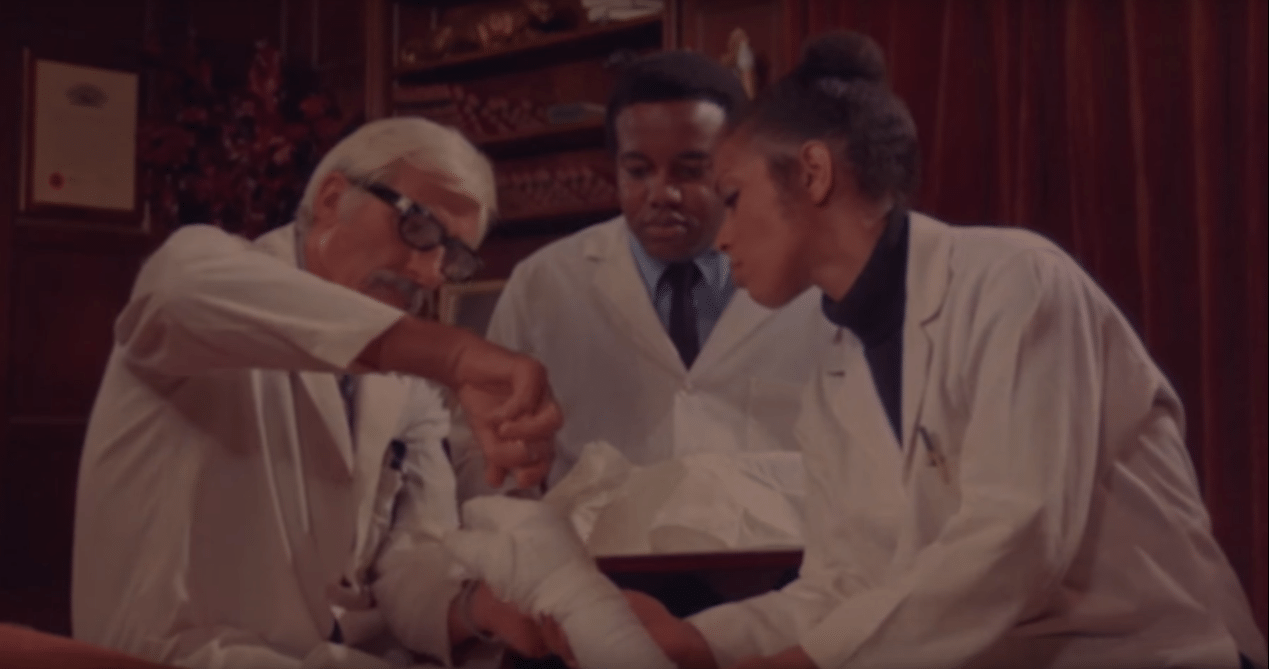 The film’s plot is a slight change from Mary Shelley’s original tale of science gone wrong, offering us a story of a wounded war vet being given a second chance at having his blasted off limbs regrown, only for a mad scientist to boo that plan in the bollocks after being friend zoned into oblivion by the wounded soldiers fiancée. Perhaps the weirdest part of the story though, especially for a Blaxploitation film with a title like Blackenstein, is that the race plays virtually no part in the film’s story nor is there any thematic overtones dealing with race. The film is simply a cheap Frankenstein remake with a black man playing the monster that’s it. And it’s a bad Frankenstein remake to boot.