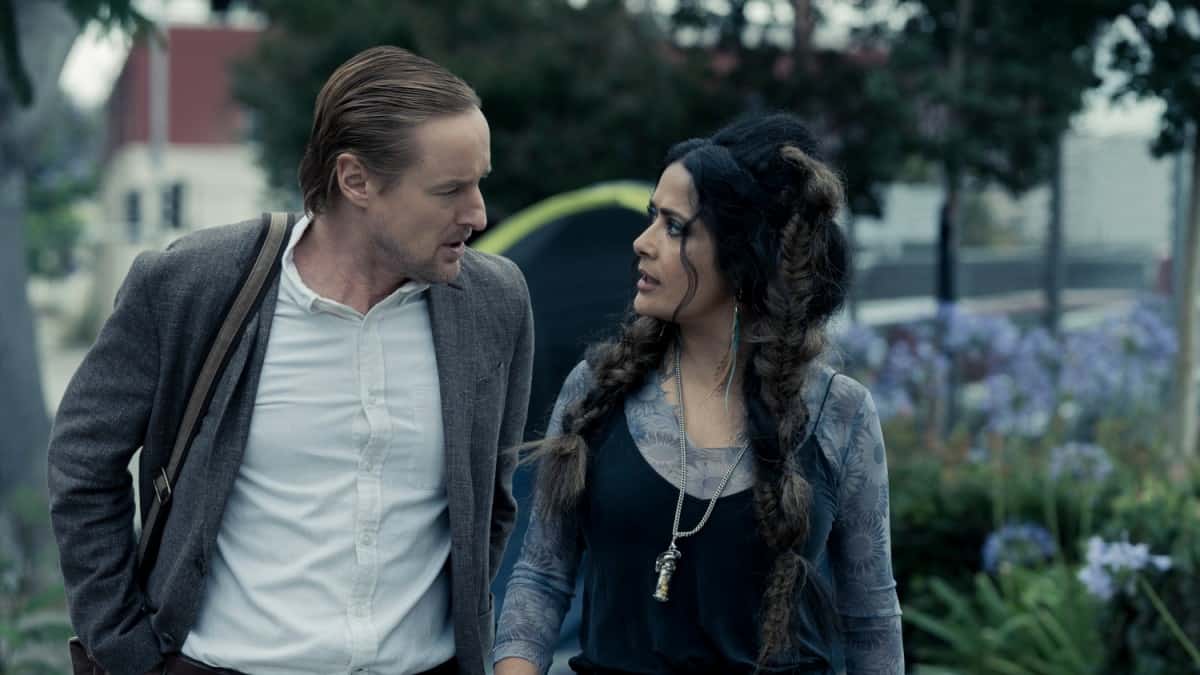 Wilson plays call centre drone Greg, who has recently divorced from his wife and is concerned about making things awkward at the graduation ceremony of his daughter Emily (Nesta Cooper). After an encounter with his boss goes drastically wrong, Greg is fired and spends the rest of the day in a bar. Mysterious patron Isabel (Salma Hayek) approaches Greg and reveals that he is one of very few real people living in a simulated reality, which they can manipulate if they take yellow pills. It’s an impressive concept and I won’t go any further into the plot for the purposes of this review. That’s a qualm not shared by the trailer, which is one of the most spoiler-packed of the last few years.