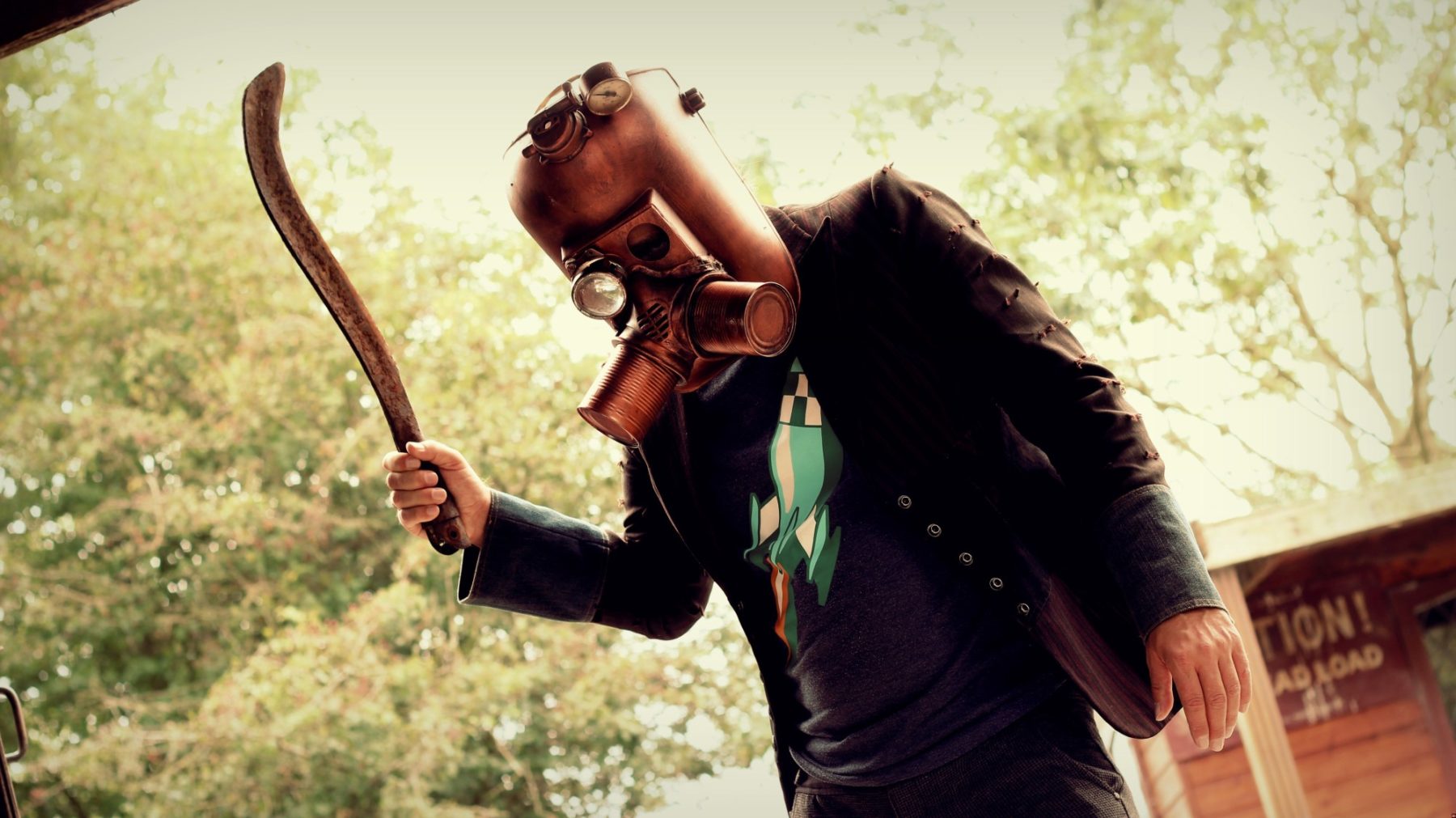 When your film opens with a torture scene where a young woman has her mouth sewn together and her eye gouged out with a fork by a killer wearing a mask akin to something from a steam punk fair, you know the type of film you’re in for. Low budget horror director and writer George Clarke’s latest effort Blood Harvest is a bizarre piece of filmmaking that seems to equate to a bunch of killing scenes and a hilarious third act.